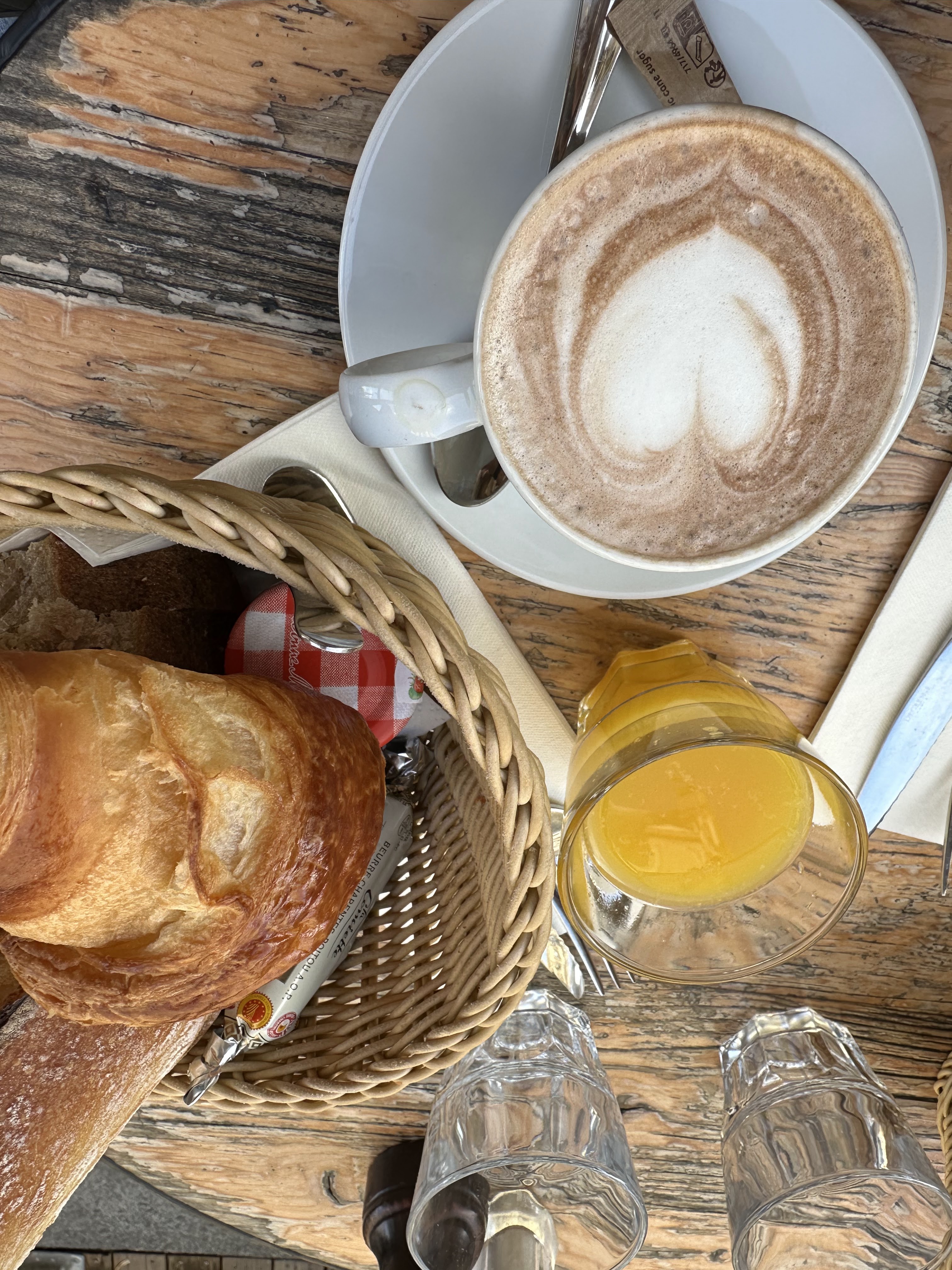 Excellente formule petit-déjeuner, très bon rapport qualité prix. Formule très copieuse de 11,50 € composée d'un croissant ou pain au chocolat (viennoiseries au beurre et c'est rare !) un jus de fruit pressé, une boisson chaude (chocolat chaud excellent), un quart de baguette du jour, du beurre de qualité et une confiture au choix. Je reviendrai avec plaisir!