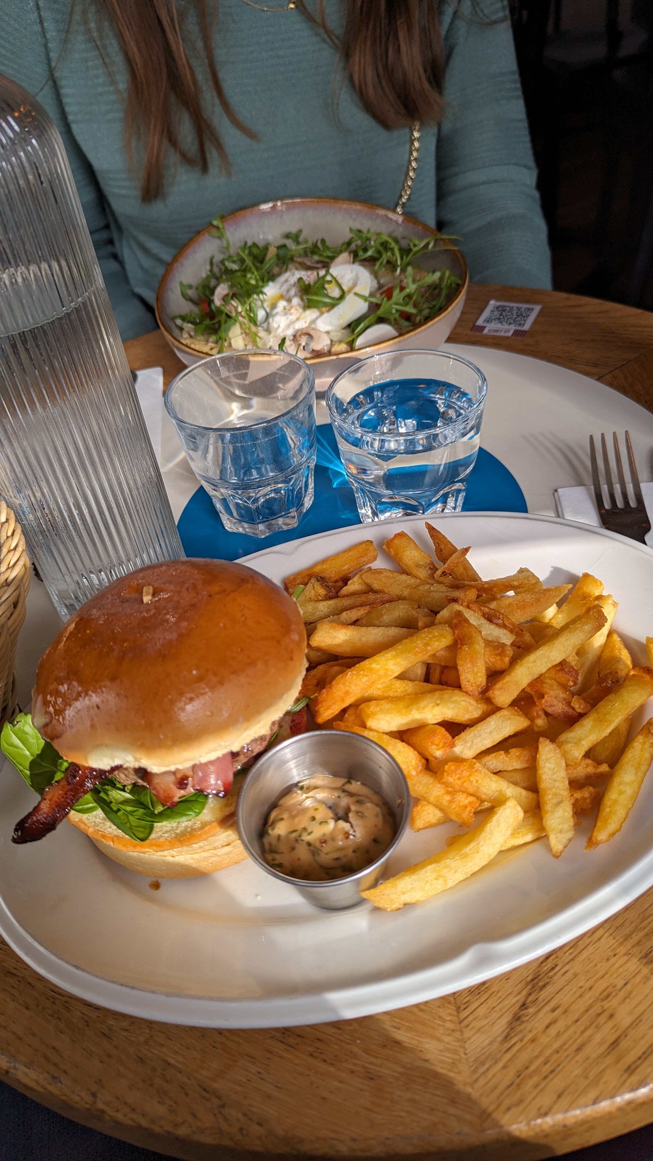 Conformément à d'autres avis, nous avons payé la proximité de la tour Eiffel. Malgré tout, nous avons bien dîne sans trop patienter. Nous avons pris un Burger, kefta et vegan bowl ... nous avons toutes les 3 apprécié nos plats avec des frites maison ...