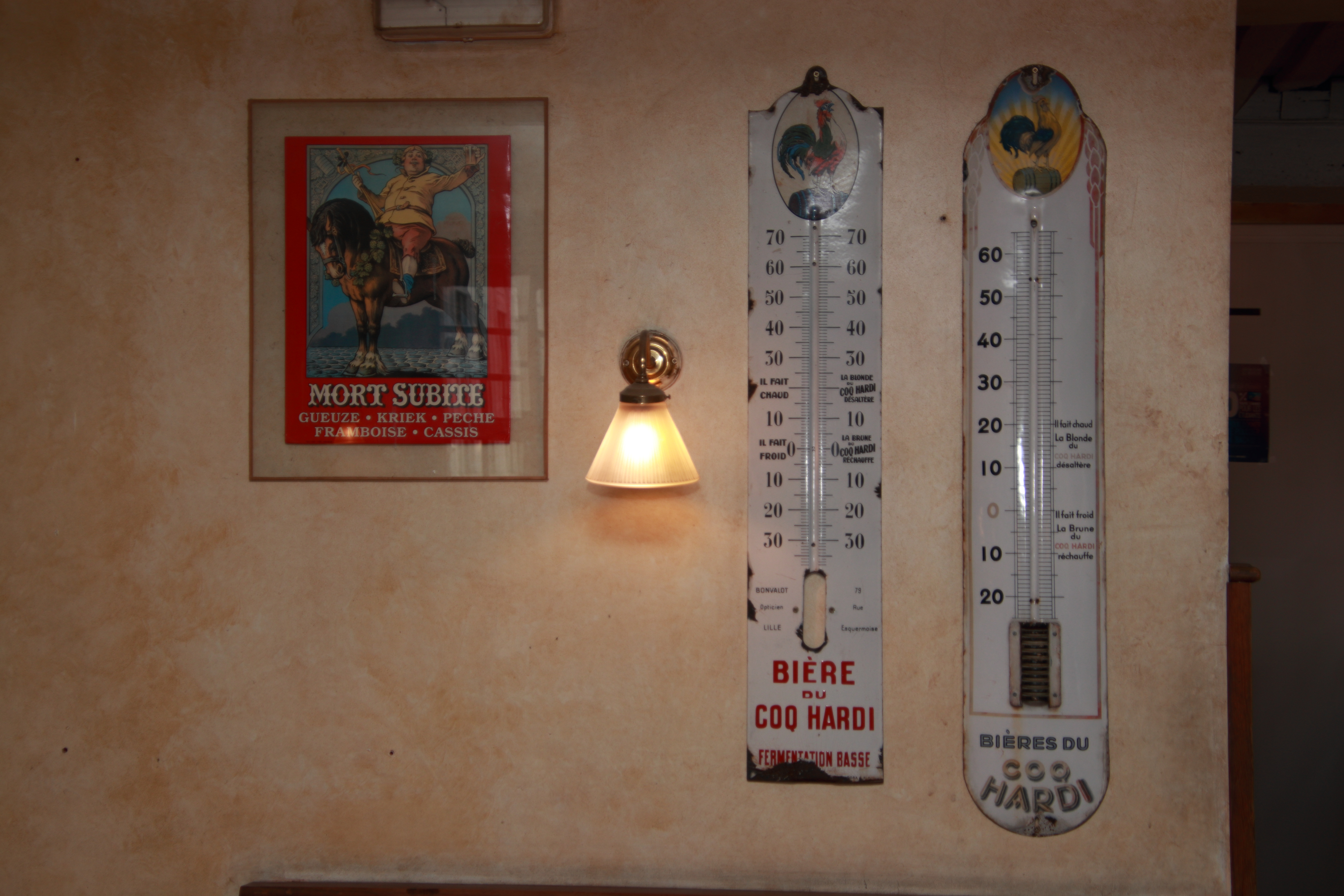 Déçus. Très déçus. 5 années nous séparent depuis notre dernière venue dans cet établissement avec ma compagne. Quel changement !! Pour La nourriture bien entendu. La carte semble inchangée. En revanche, les plats servis ont connus de sérieux changement tel celui que j'ai choisi : Un plat régional le coq à la bière. Est-ce un erreur de dire que ce plat est un plat mijoté ? A mon avis, plus Ici. Ce midi, j'ai eu droit à un plat où l'on dresse, dans votre assiette, divers morceaux de coq, qui semblent cuient à la vapeur, réchauffés au micro-ondes, nappés avec une sauce à la bière, echalotte et champignon de paris. Pour s'en convaincre, une partie de la peau du coq, qui m'a été servie, n'a jamais été imbibée de celle-ci. Rien ne semble cuit sur place, tout semble déconditionné et ensuite dressée sur place comme par exemple, la sauce au maroille qui accompagné les filets de poulet (Autre plat servi à notre table) ... Je me trompe ? ... La Cuisine du nord mérite qu'on la respecte, malheureusement, ce n'est plus le cas au coq hardi ... c'est bien dommage. Dorénavant, j'éviterai ce lieu pour mes prochains séjours sur Lille.
