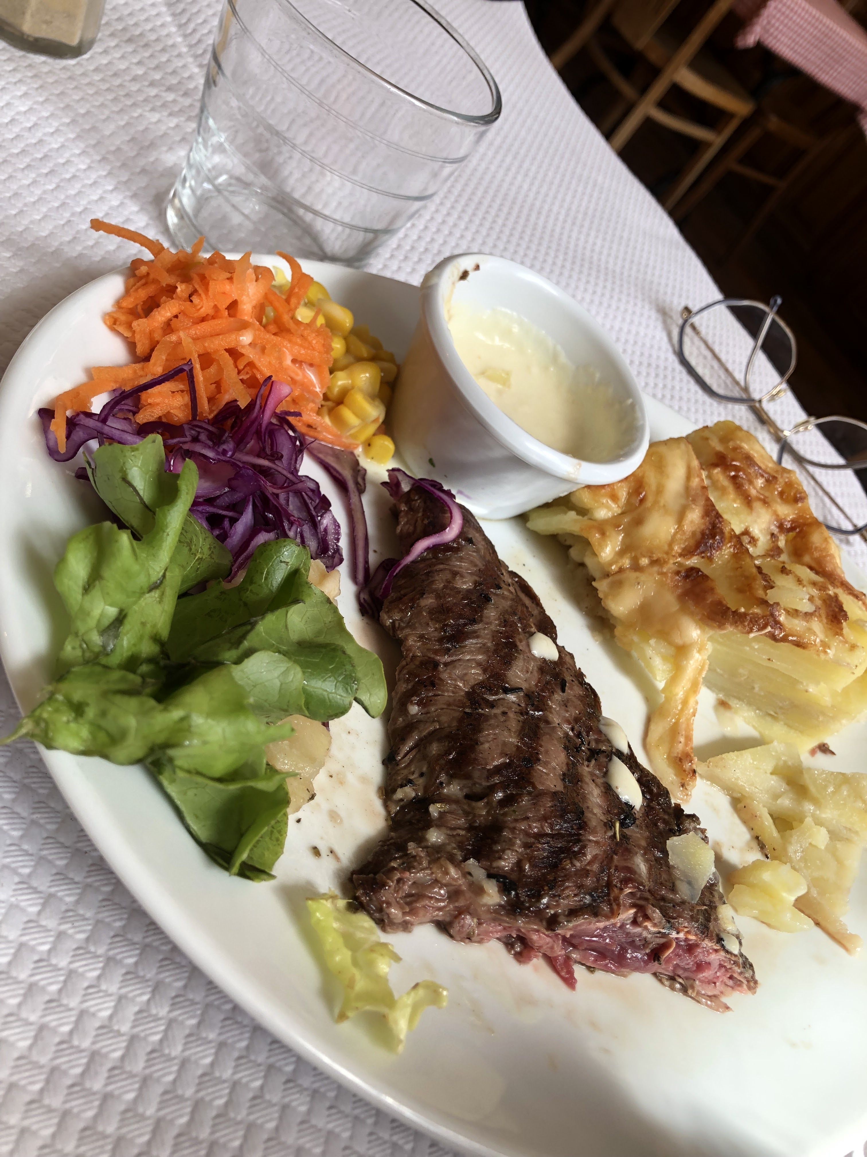 Le serveur est un peu débordé , le lieu est beau mais la cuisine est passable , comme souvent sur les lieux « touristiques ». D’ailleurs autour de nous d’autres personnes se plaignent que les plats ne sont pas ce qu’ils ont commandés.