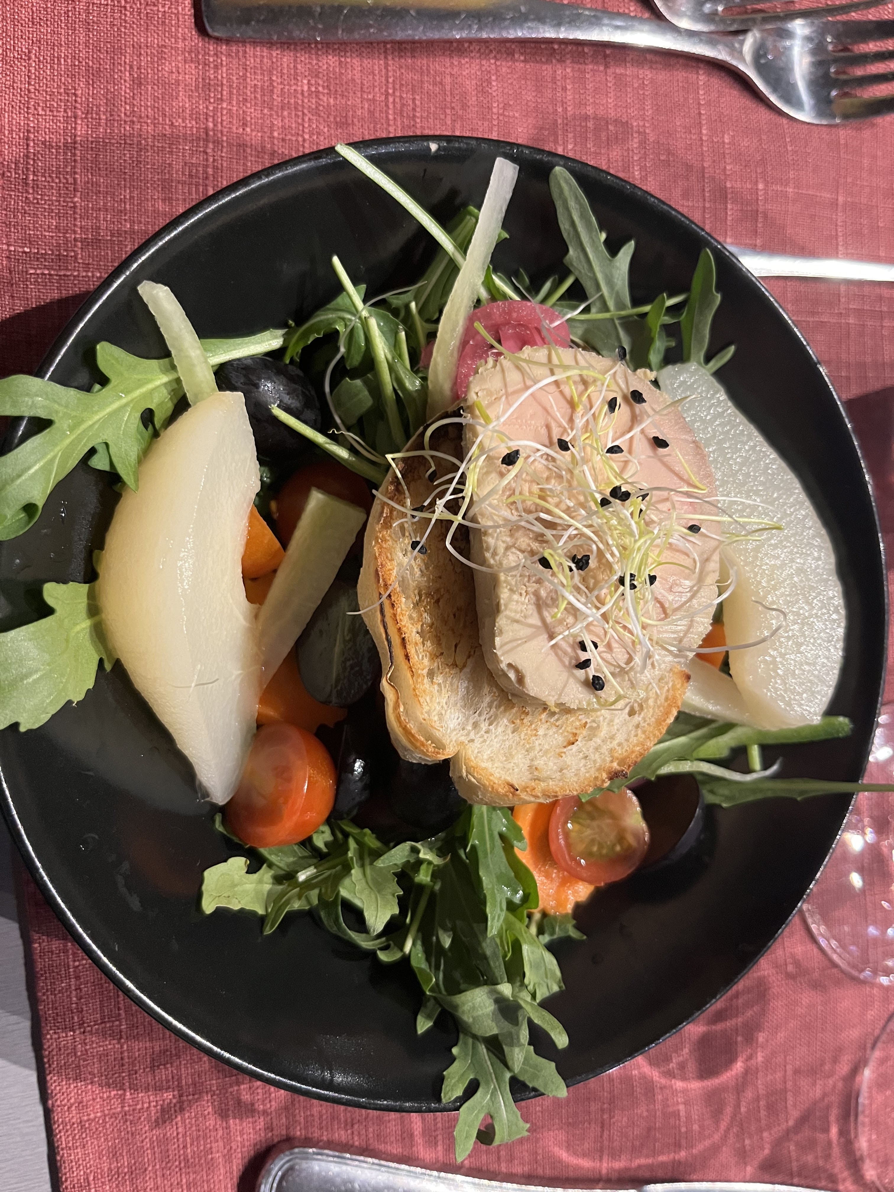 Repas ce samedi soir, j'ai pris une salade chèvre chaud j'ai été assez déçue par la quantité pour le prix juste de la salade 1 tomate coupé en 4 et 5 ou 6 petits toasts de chèvre. Heureusement que le service était irréprochable