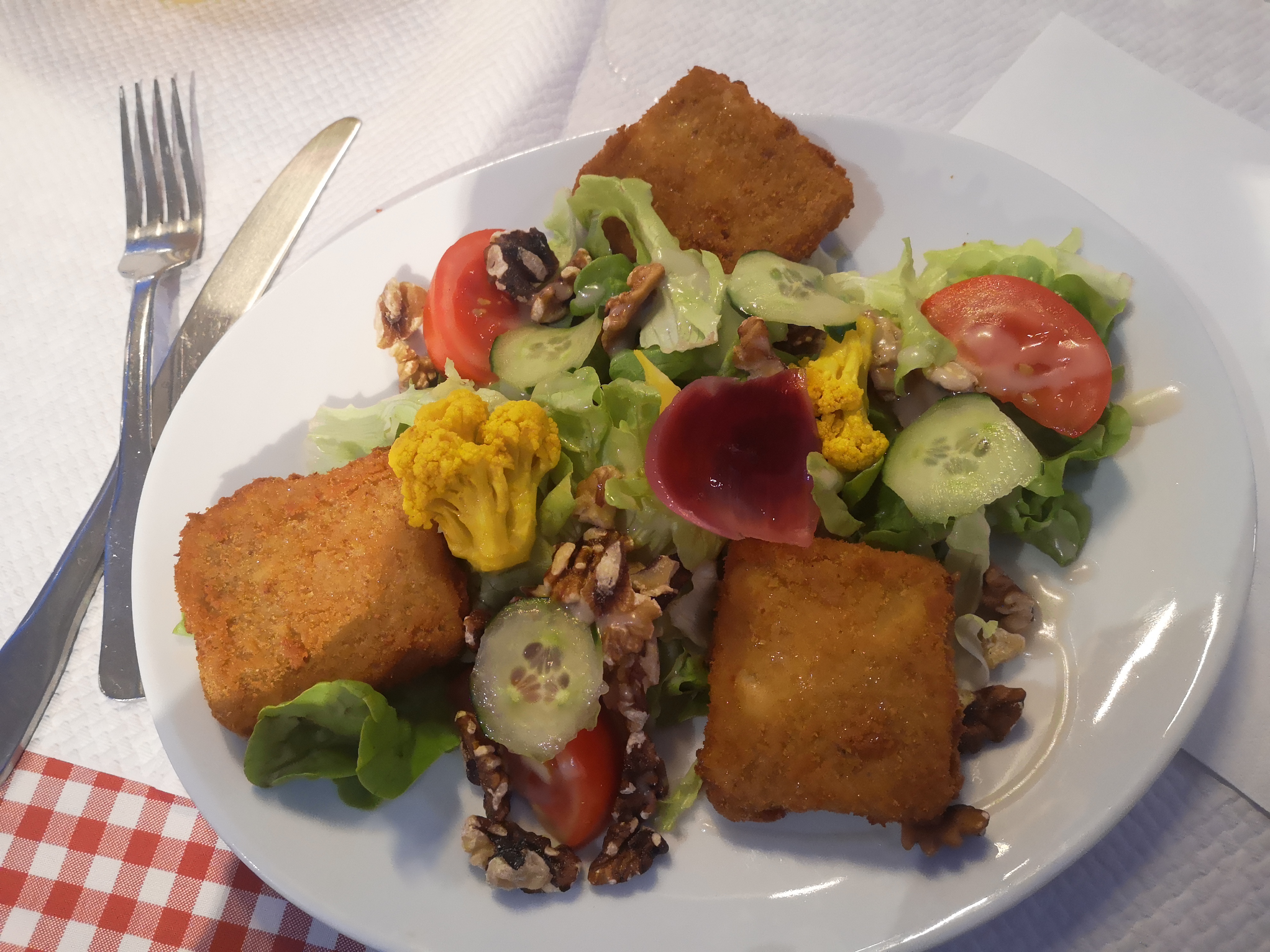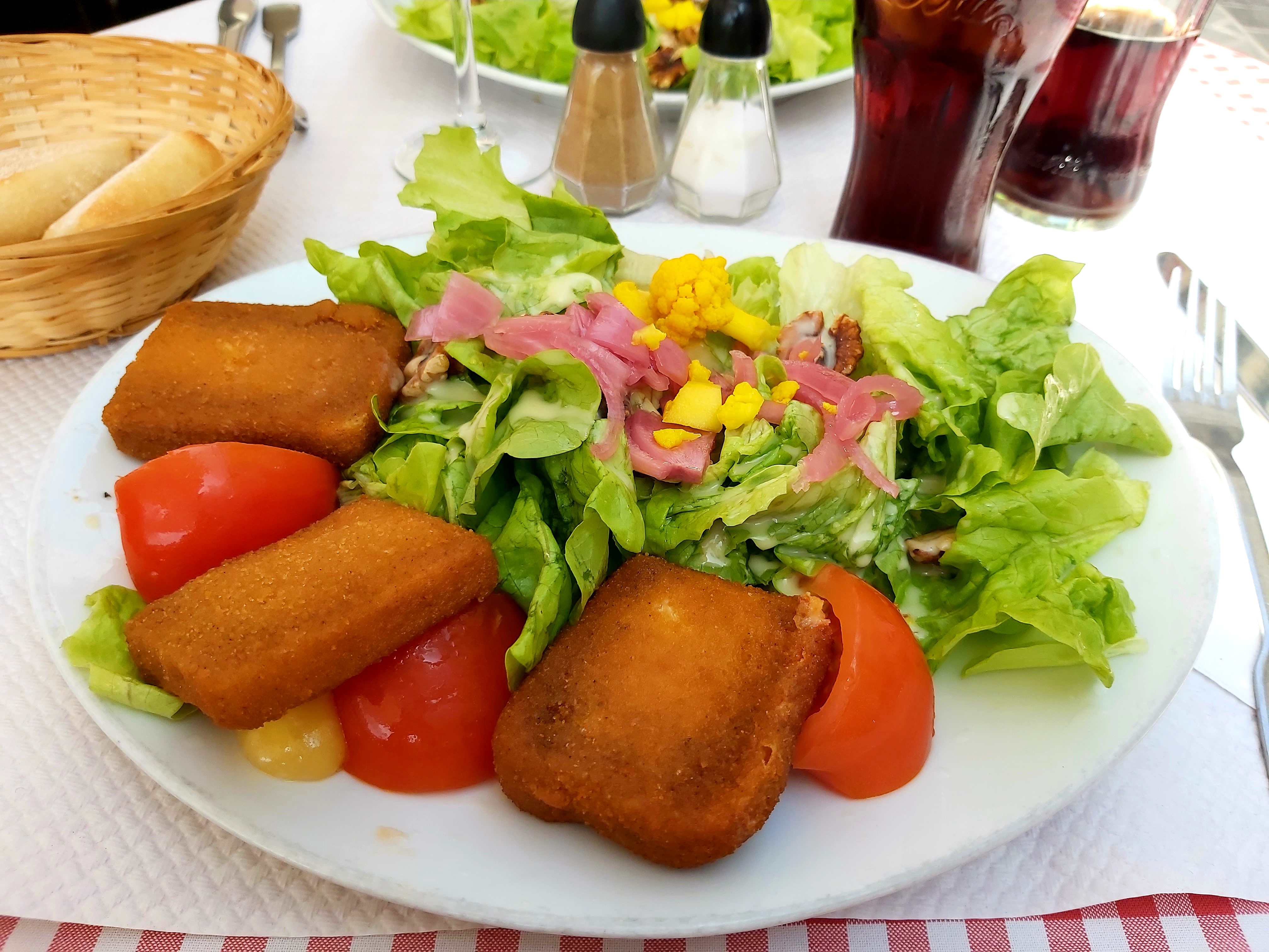 Joli endroit, notre serveuse est très sympathique et souriante, mention très bien. Par contre une petite salade verte avec des tomates qui n'ont pas vu le soleil et des croquettes industriel c'est vraiment exorbitant 16,00€!