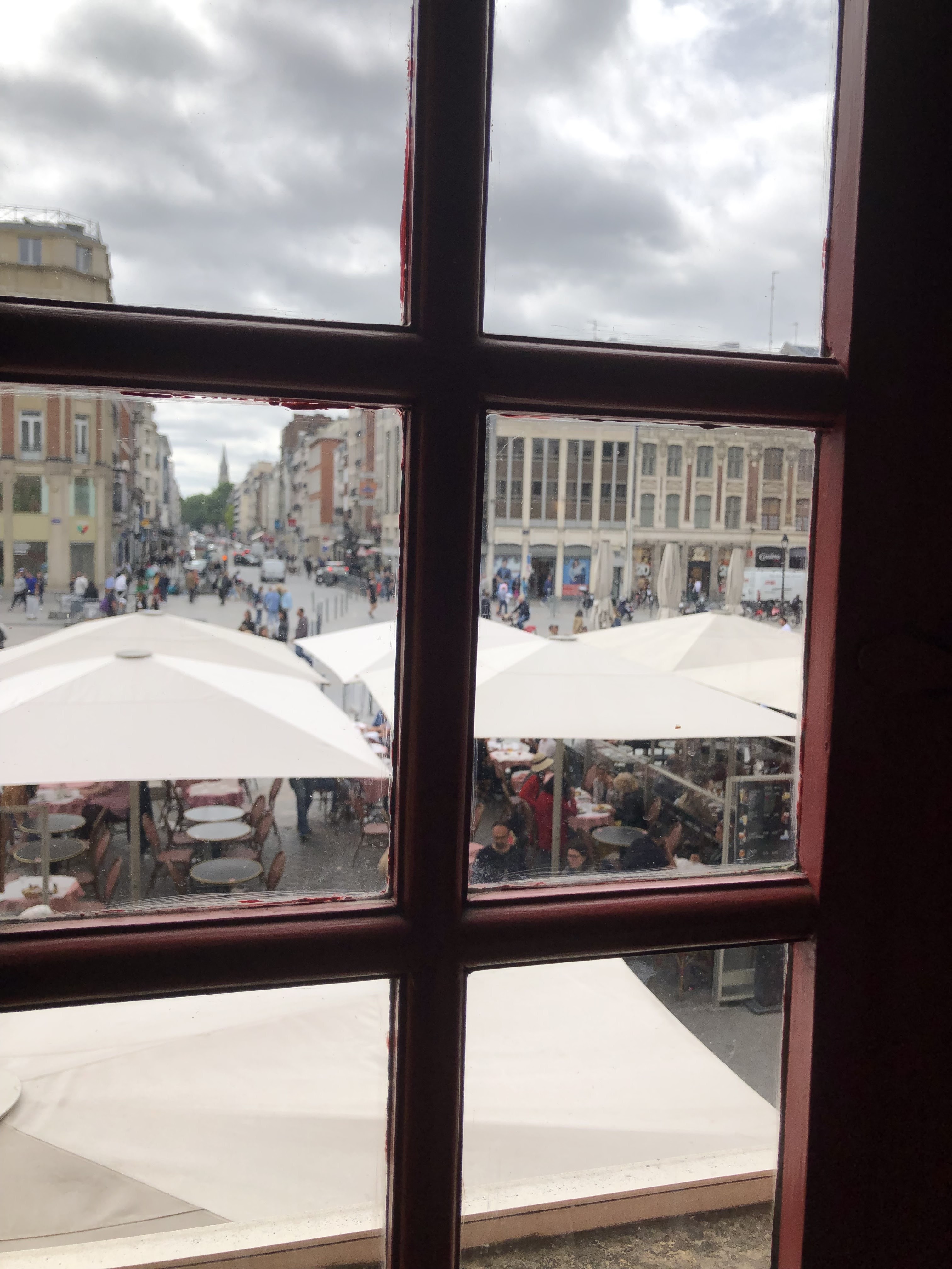 12 d'entre nous ont visité ce café avec terrasse sur l'une des principales places de Lille lors d'une journée en Eurostar au départ de Londres. Nous sommes arrivés en milieu de matinée lorsque la place était calme, nous sommes restés pendant l'heure de pointe du déjeuner lorsque la place était pleine et jusqu'au milieu de l'après-midi lorsqu'elle s'est à nouveau calmée. Lors de notre arrêt, nous avons dégusté les différentes bières pression, des boissons gazeuses et des cafés. Dans l’ensemble, tout va bien. Nous avons essayé des saucisses locales, ce qui n'était pas ce à quoi nous nous attendions, mais cela s'est néanmoins bien passé. C'est une chose sèche et dure coupée en tranches et, j'imagine, normalement mangée avec autre chose comme une sauce ou une trempette, etc., mais pas seule. Si vous voulez juste des boissons et des collations au bar, vous pouvez vous asseoir à l'extérieur du café. Si vous voulez manger, vous devez vous asseoir sur la table couverte sur la place elle-même. L'endroit est très fréquenté alors allez-y tôt pour trouver une place. Ce que nous avons vu de la nourriture apportée aux tables avait l'air bien. Dans l’ensemble, c’est un endroit agréable pour s’asseoir et discuter pendant quelques heures aux prix standard du centre-ville et des touristes.