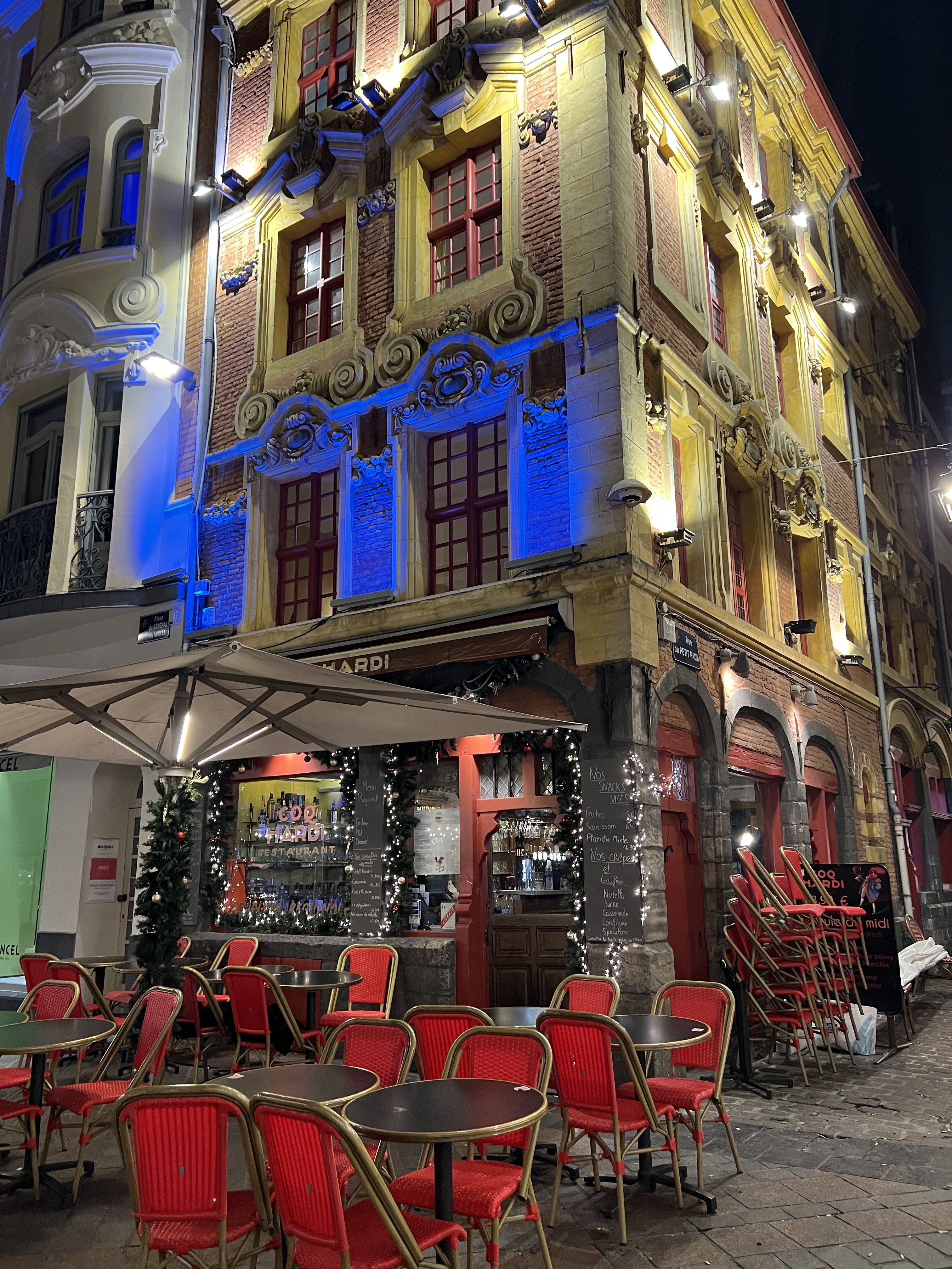Dans sa catégorie de Brasserie touristique situé sur la place le Coq Hardi propose différents plats et menus. Pour 13,80€ vous avez un menu plat + dessert ( mes amis ont prit du poulet au Maroilles qui était sympa d’après eux ). Pour ma part j’ai pris un burger à 15€ qui était sympa et m’as rempli. Je conseil si vous êtes de passage sur Lille et que vous chercher un endroit sympa pour se poser.