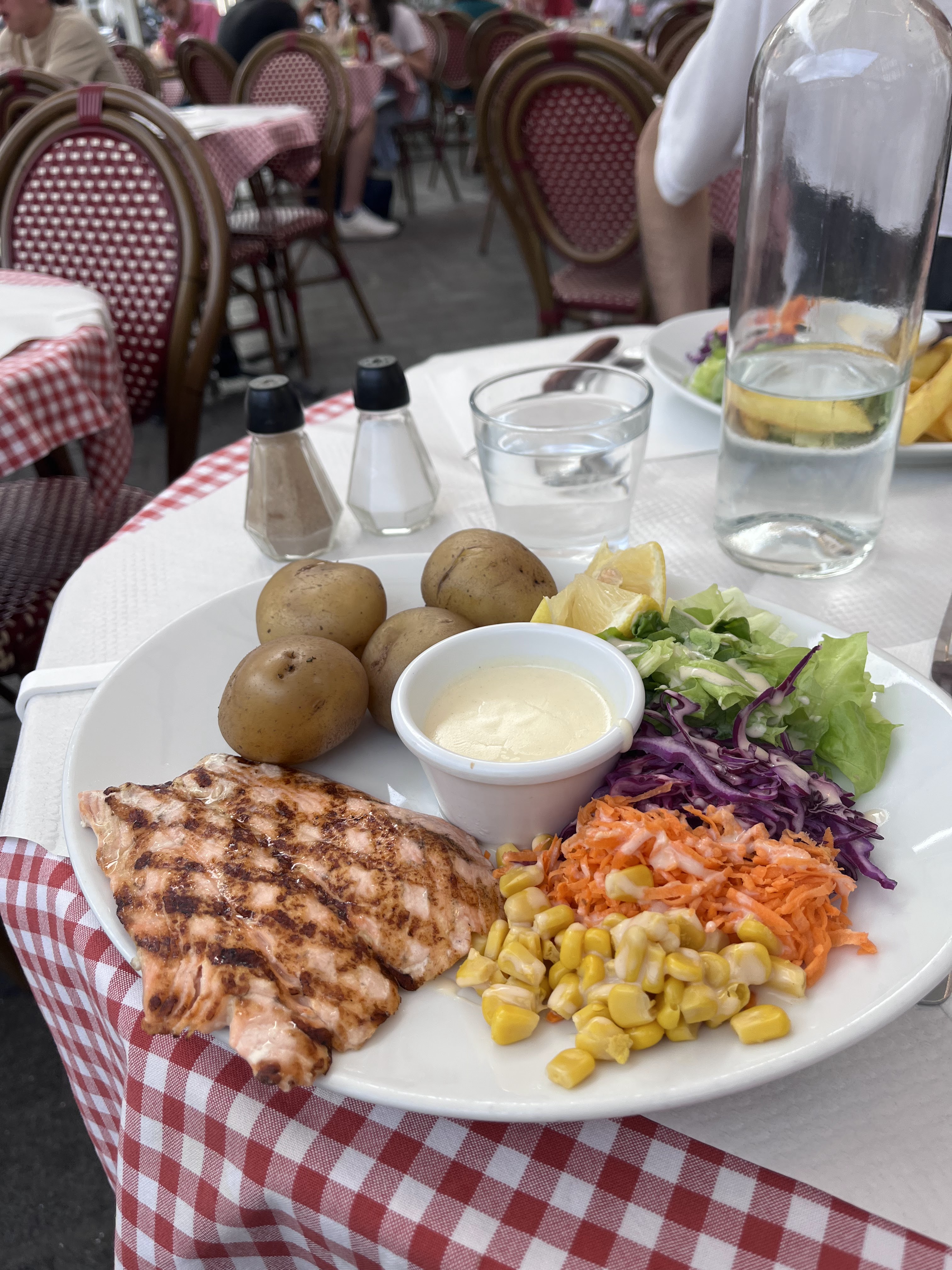 Le waterzoi de saumon manqué un peu d'assaisonnement. Plat au prix très raisonnable. Très beau cadre