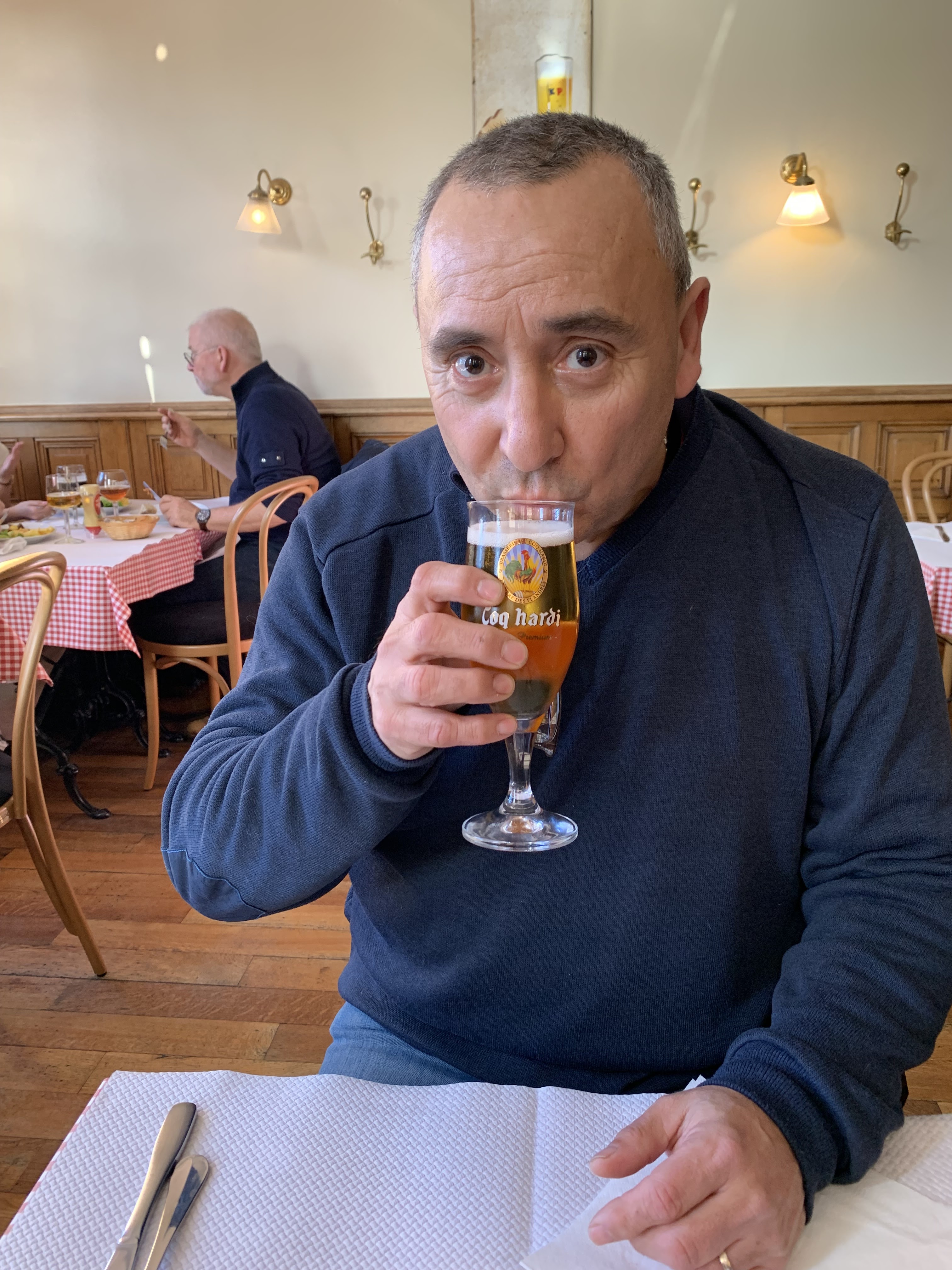 Nous avons déjeuné dimanche au Coq Hardi et ce fut une excellente expérience. Accueil très sympathique, service rapide et délicieux. Petite pensée pour Max qui n'a pas pu aller au Jardin Électronique, mais nous lui avons fait honneur avec ce joli drapeau qu'il nous a donné !