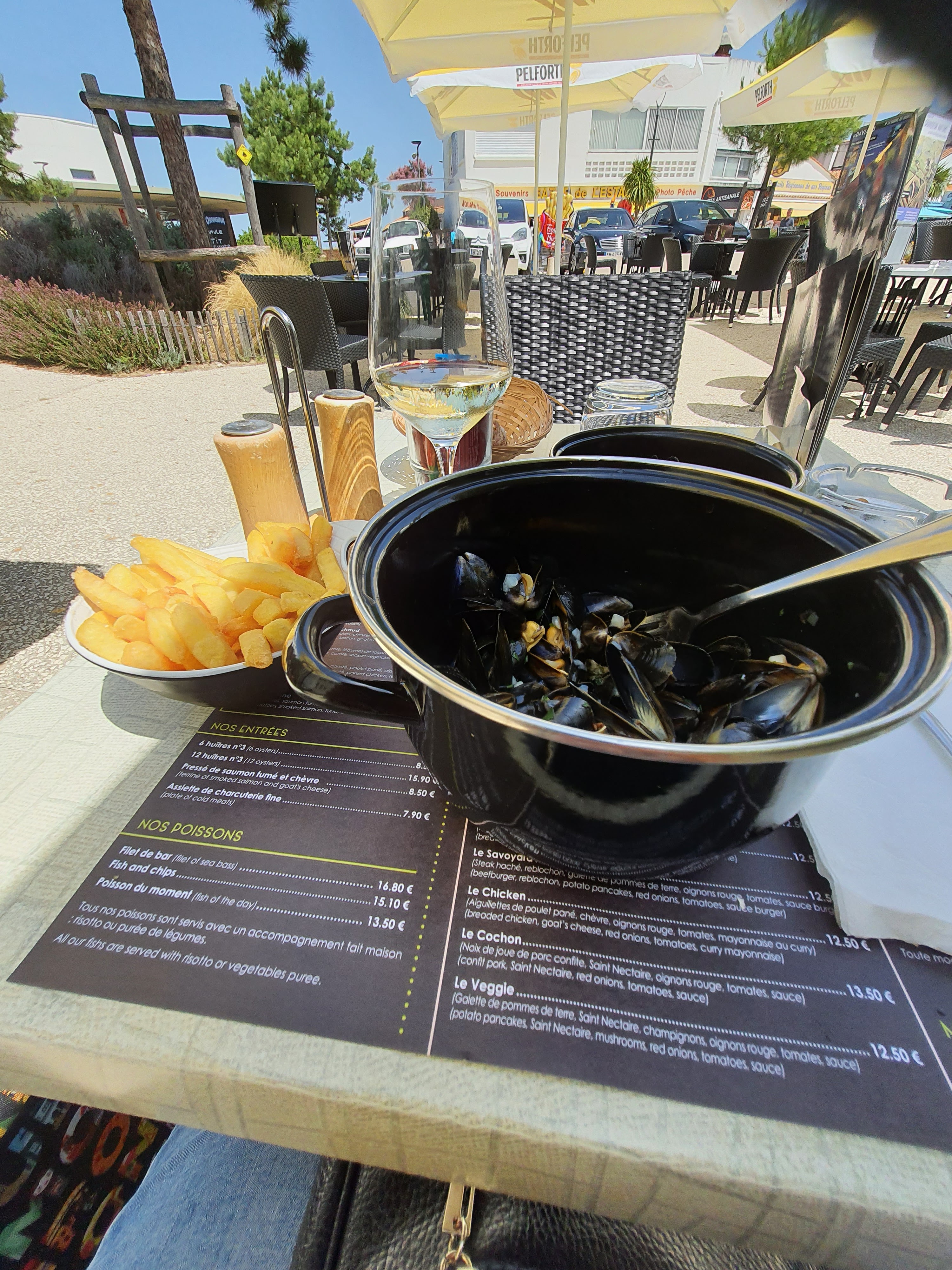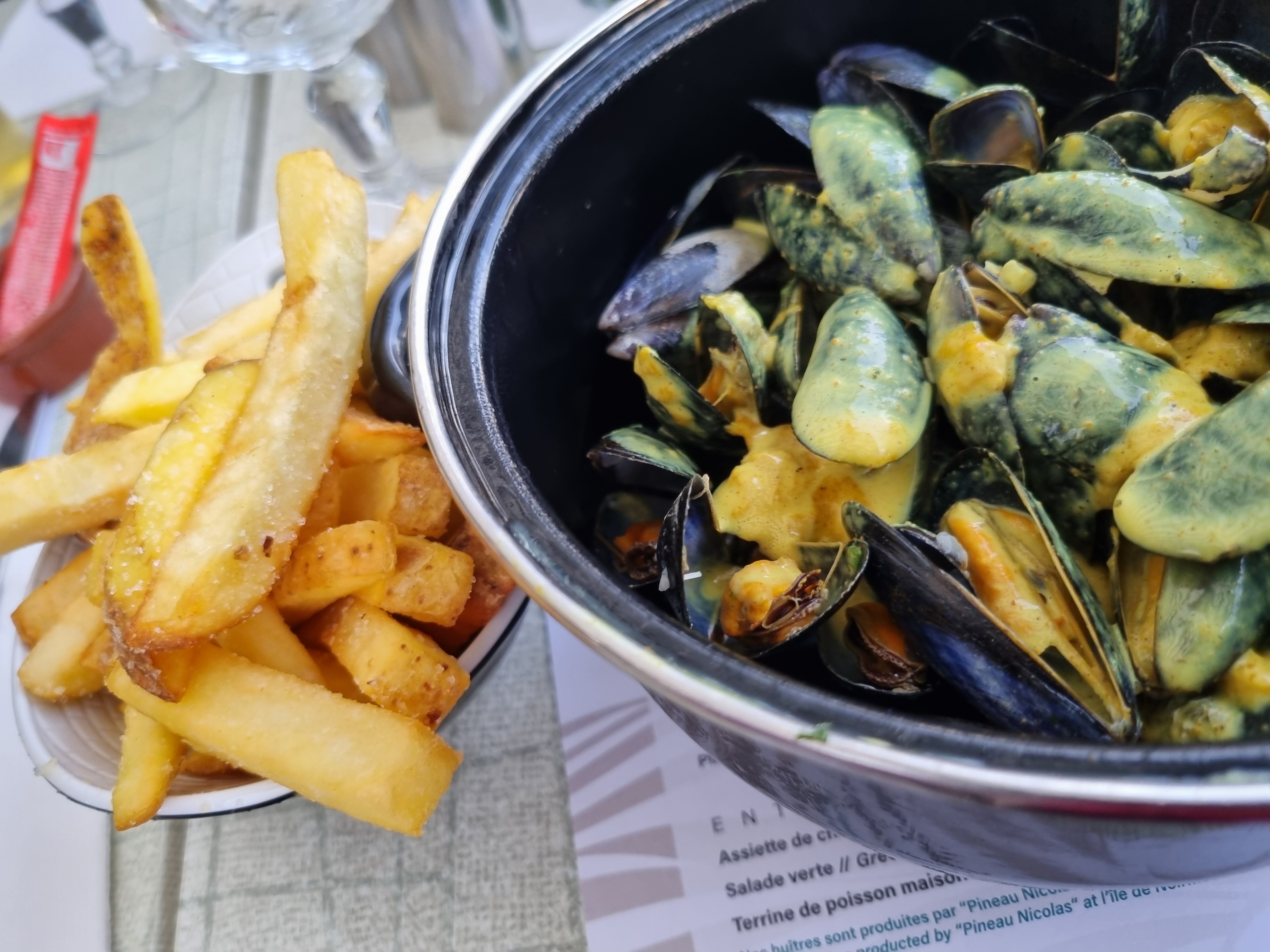 Moules frites a différentes sauces avec frites maison le petit vin blanc vendéen parfait entre amies apres une journée de vélo La cadre très agréable sur le jardin Les serveurs et serveuses souriant et très agréable ....Bravo félicitations....