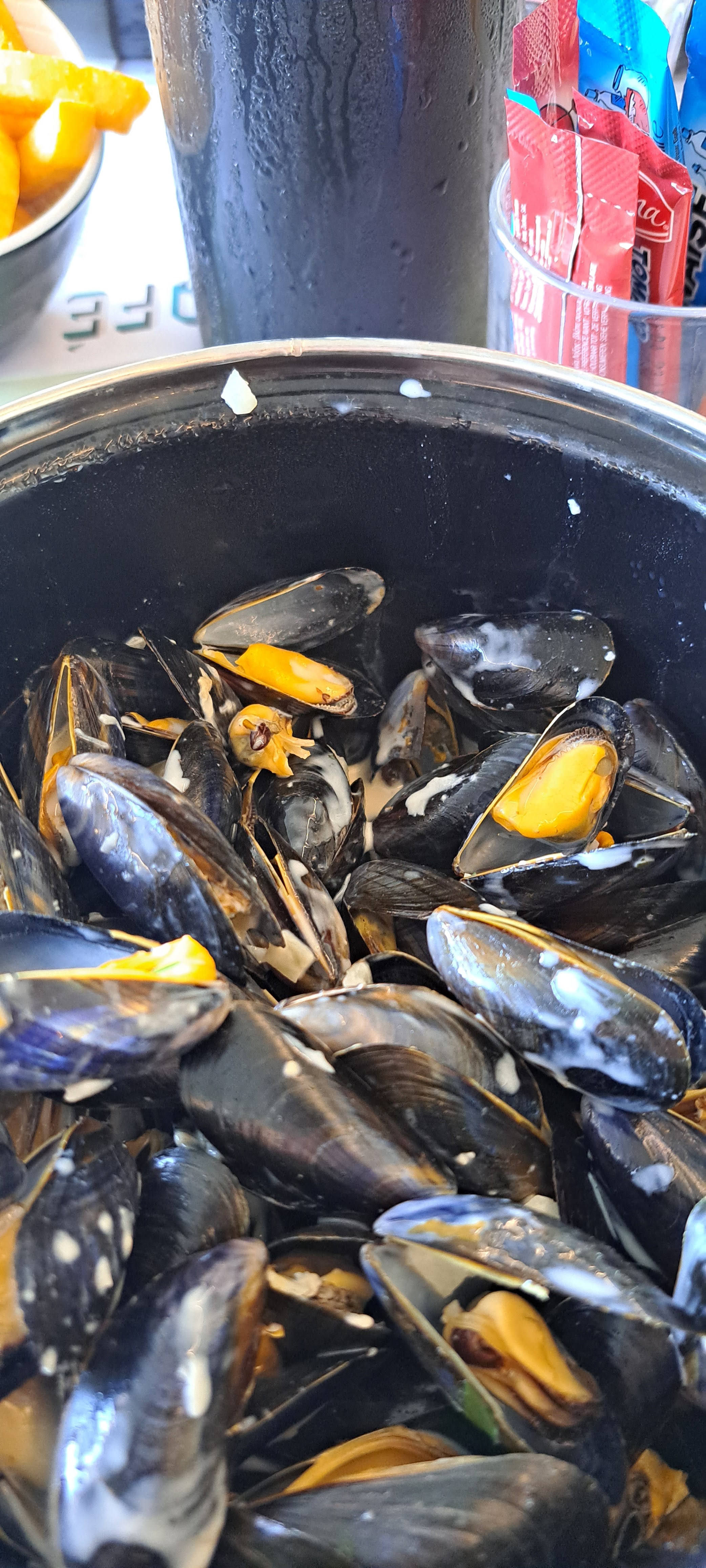 Lieu sympa, mais la quantité de frites avec les moules, est trop petite (à mon goût)