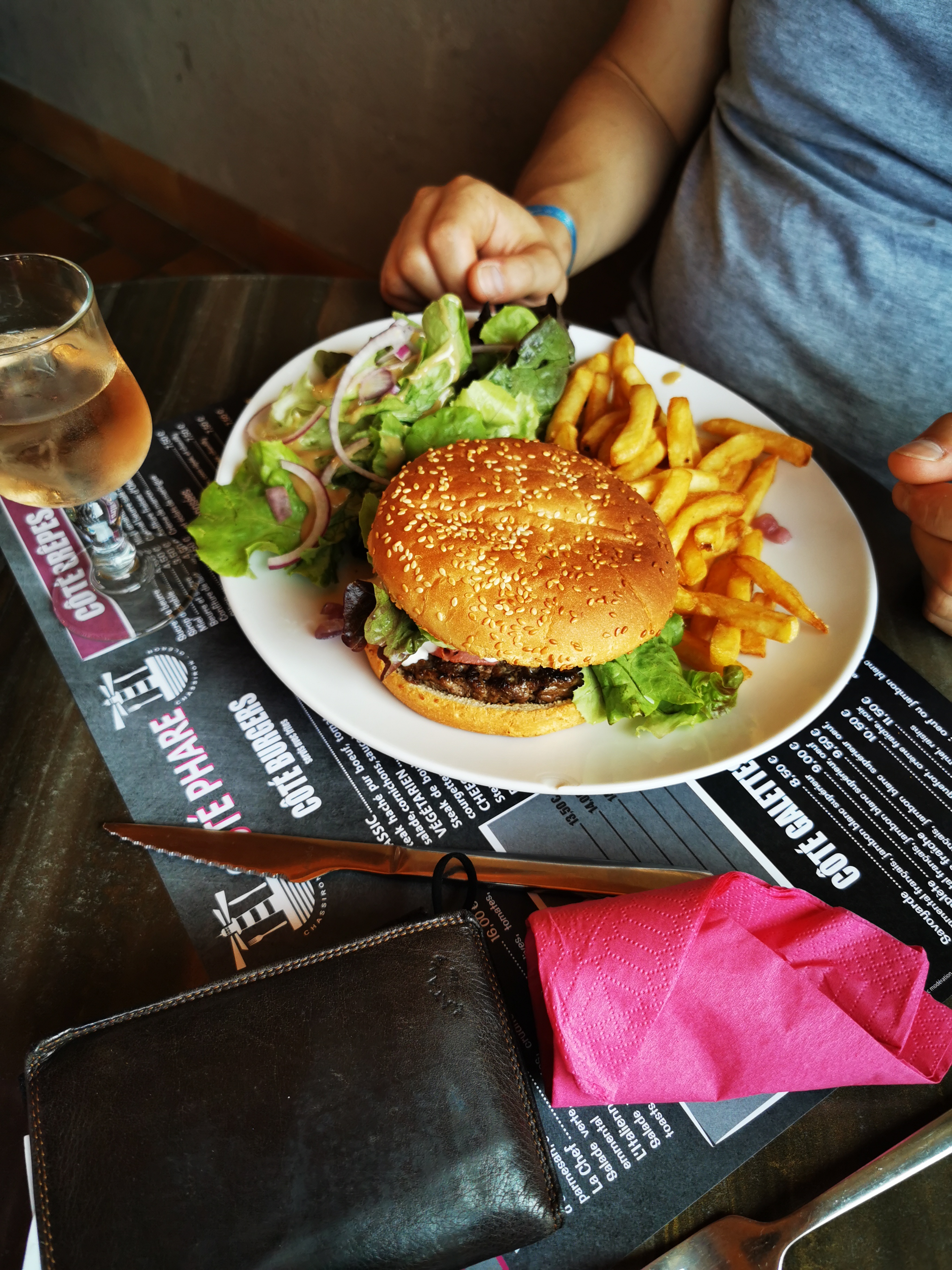 Restaurant basic Un large choix a la carte galette ,hamburger, salade ,viandes ect