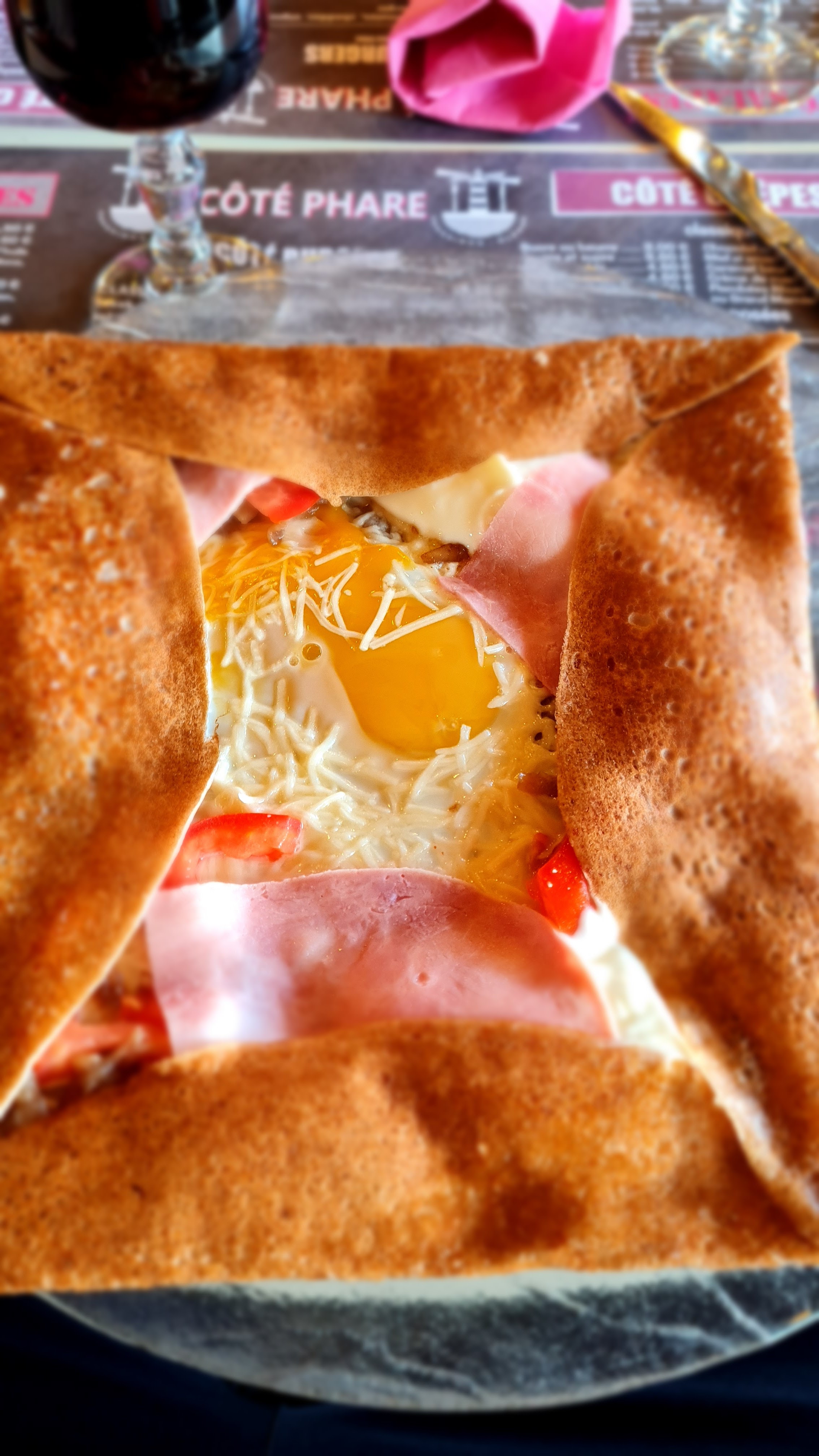 Je m’attendais à un piège à touristes et je me suis trompé !! 2 galettes salées très bonnes , les serveuses et serveurs efficaces, les patrons sympathiques. La surprise a été le café ☕️ gourmand 😋😋😋: il porte bien son nom car il est couronné par une bonne profiteroles au chocolat !! Je le recommande pour se remettre de la montée du phare !!