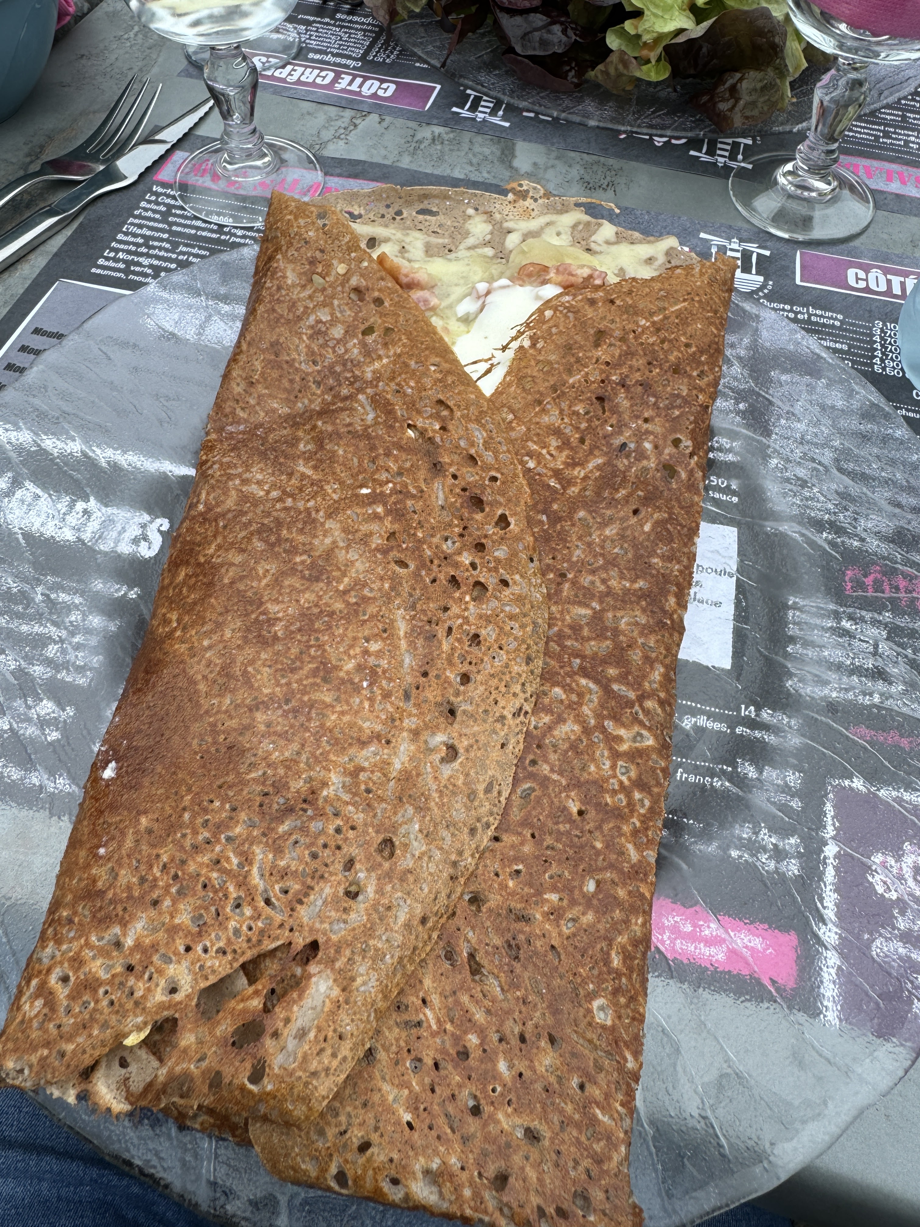 Galette Américaine pas mal, personnellement c'était chaud, mais les personnes avec qui j'étais on eut un plat froid, la gaufre est croustillante mais manque de goût. C'était cher pour la qualité des plats, plus une réflexion limite d'une serveuse, qui a entaché l'expérience.