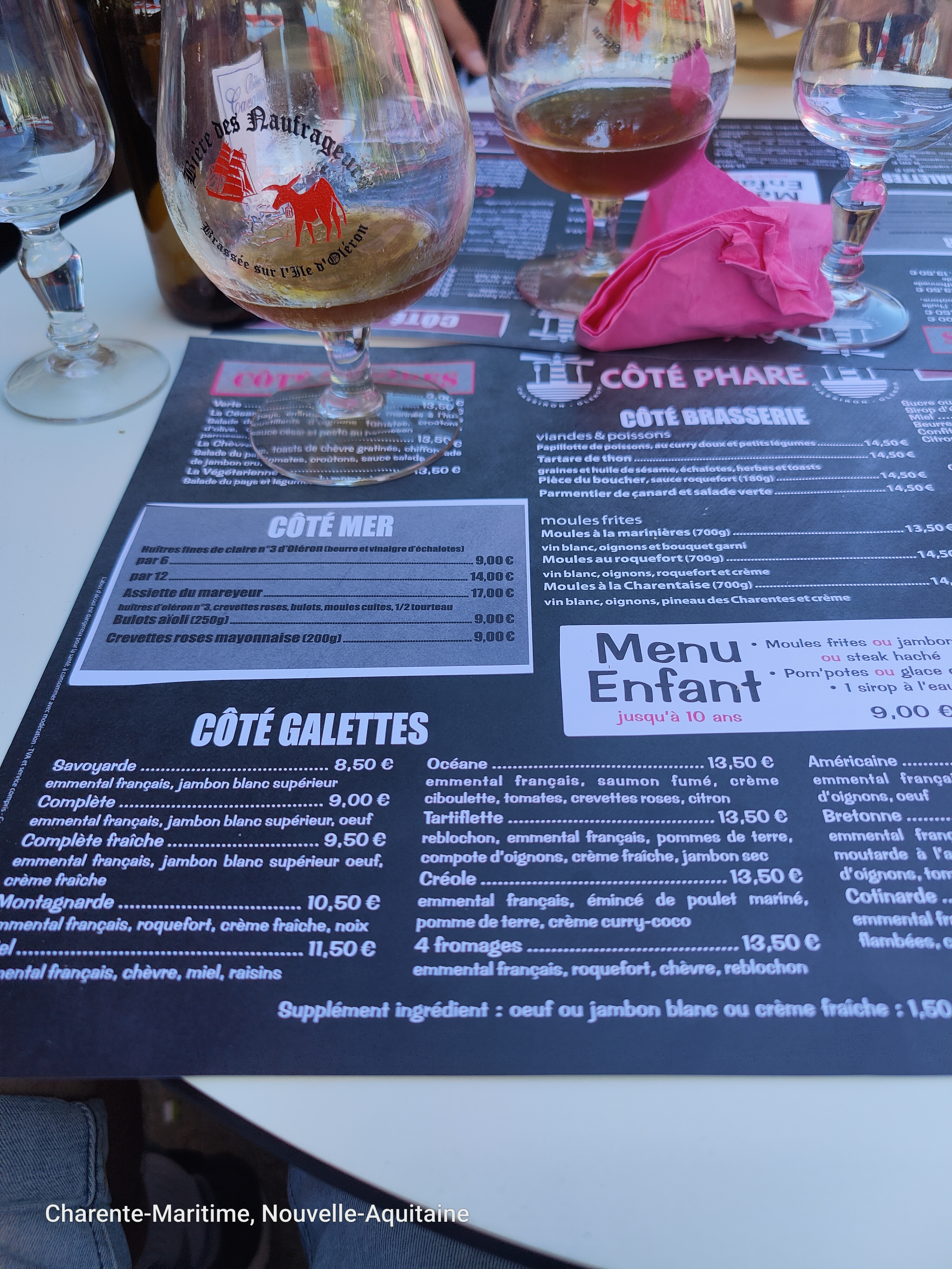 Petite visite en famille du phare de Chassiron, et arrêt a la crêperie bio côté phare. Carte simple et efficace. Menu enfant sympa a noter que dans celui ci il ne propose pas de coca en boisson mais de l'eau grenadine menthe ou nature.... Belle idée!! Les galettes sont bonnes bien garnie, il propose des cocktail avec ou sans alcool. Niveau prix c'est très correct. Enfin pour un arrêt déjeuner au pied du phare a recommandé !
