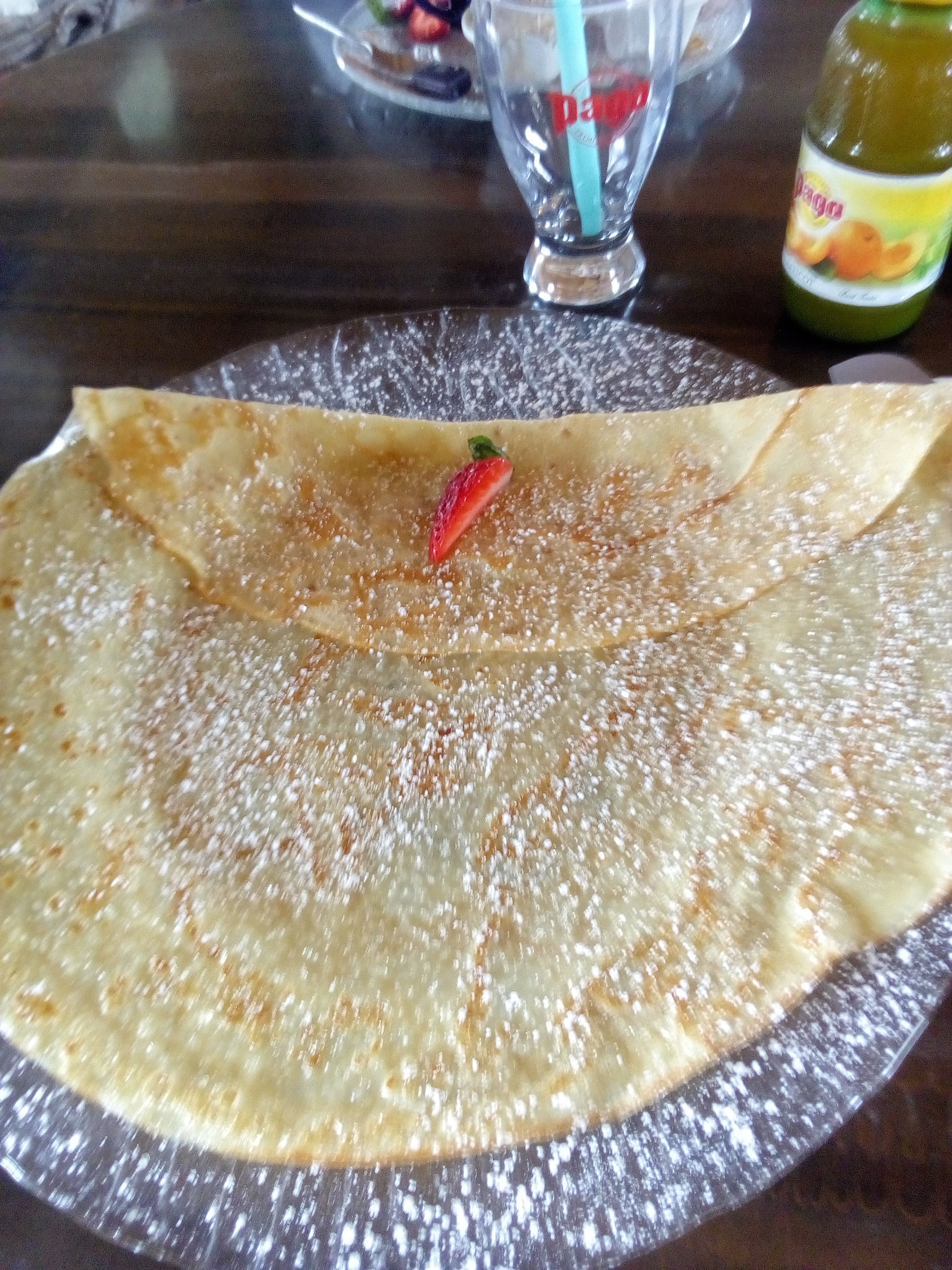 Attente pour la prise de commande….. la considération n’est pas de mise ! Facilité sûrement par l’endroit très touristique… ils ne feront pas leur beurre dans des endroits à forte concurrence ! Les crêpes sont du chewing-gum avec du nutella au compte goûte …. Nous attendons toujours 1 verre d’eau et 3 gaufres …au bout de 25 min ! (2 allées retours en cuisine car nous apportent des crêpes et pas des gaufres !! Limite de notre faute !!