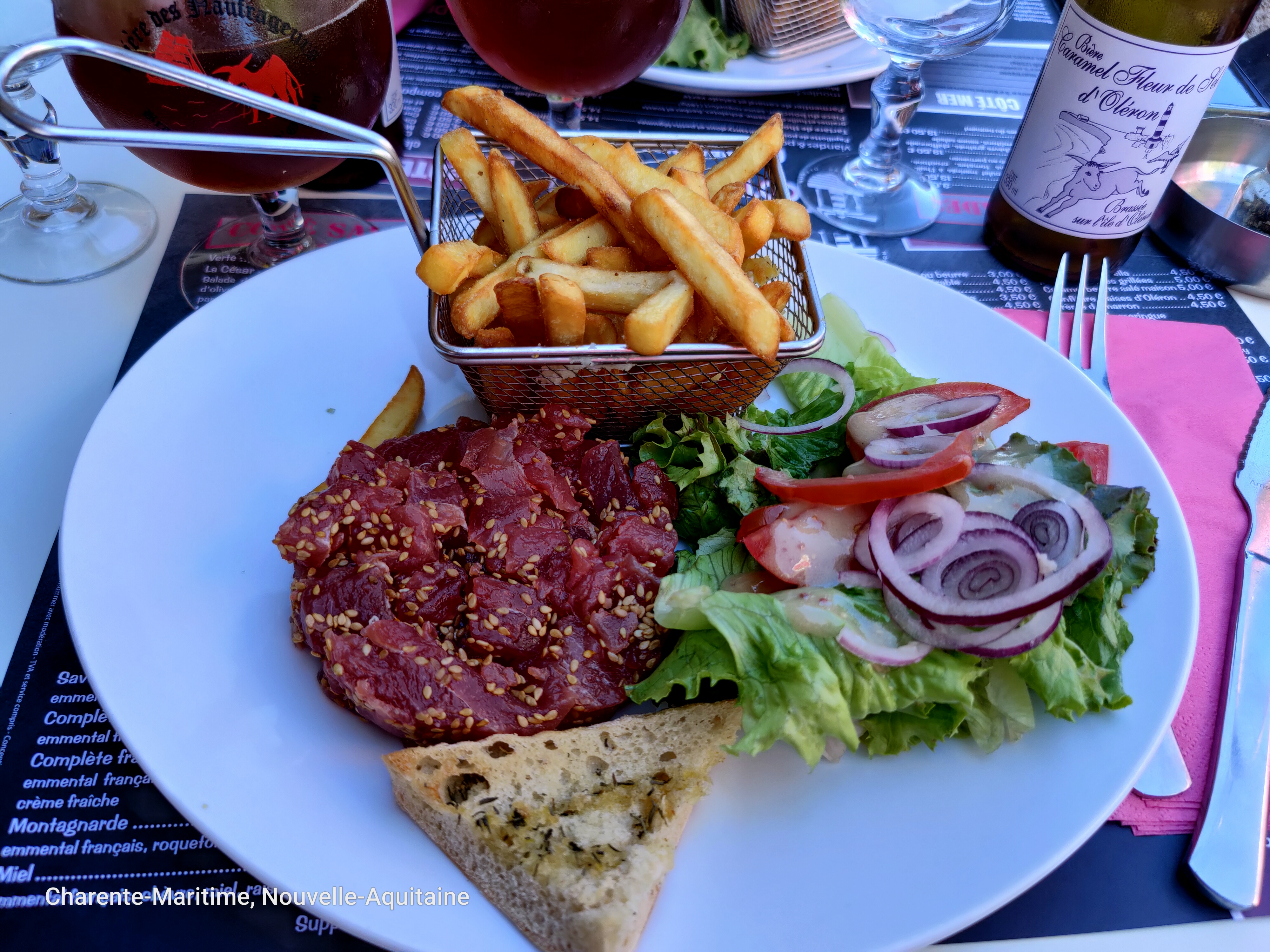Service correct, galette complète bonne, burger décevant mais le pire c'est qu'ils vous vendent la bouteille de Vittel en plastique d'1l à 6,50€ !!!!! Remarque faite au moment de payer l'addition mais aucune réaction de la personne qui a pris le paiement. PS: la même bouteille mais en verre à 5€ au Novotel 4* de Saint Trojan !