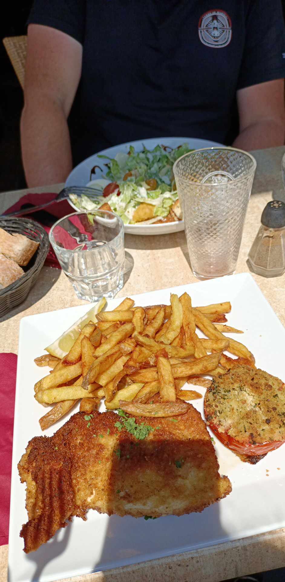 Très bon repas pris ce midi en terrasse. Escalope milanaise avec frite maison et tomate provençale, salade césar et tiramisu framboise le tout était vraiment bon. Rapport qualité prix, rien a redire. Je recommande 😊