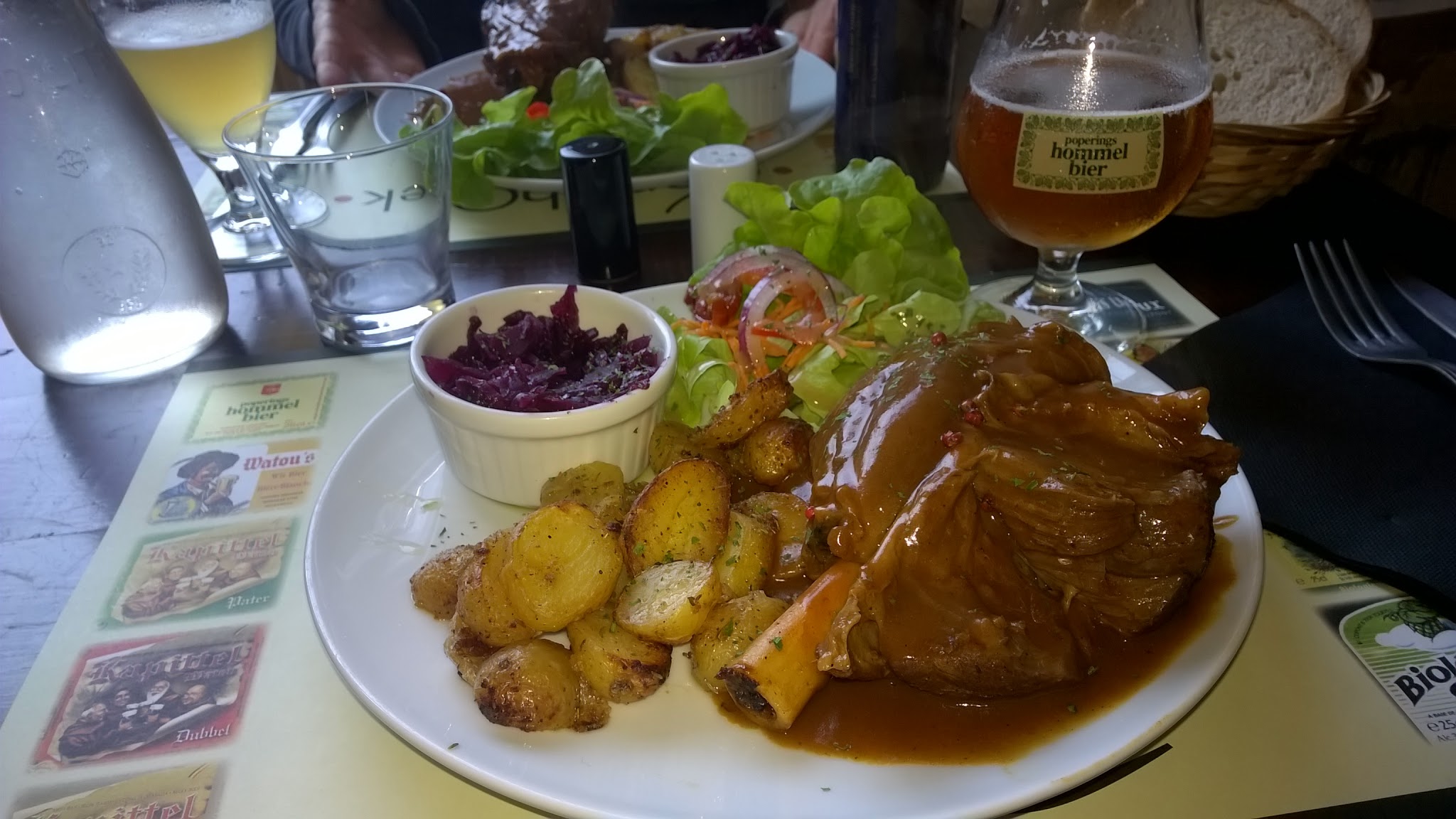 Le jarret de porc savoureux, très bien cuit, frites maison excellentes, le tout servi avec sourire et gentillesse, voilà un estaminet bien sympathique : nous reviendrons 🙂.