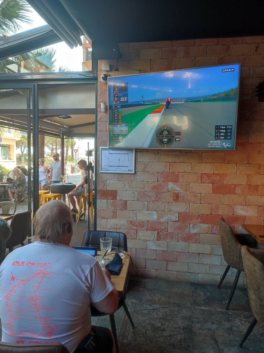 Lieu sympathique le dimanche. Du lundi au vendredi travaux cause rénovation a 30 mètres du resto insupportable.pour la vidéo des moto GP , juste l image🤏🤏🤏. Dommage l année passée le son était présent.