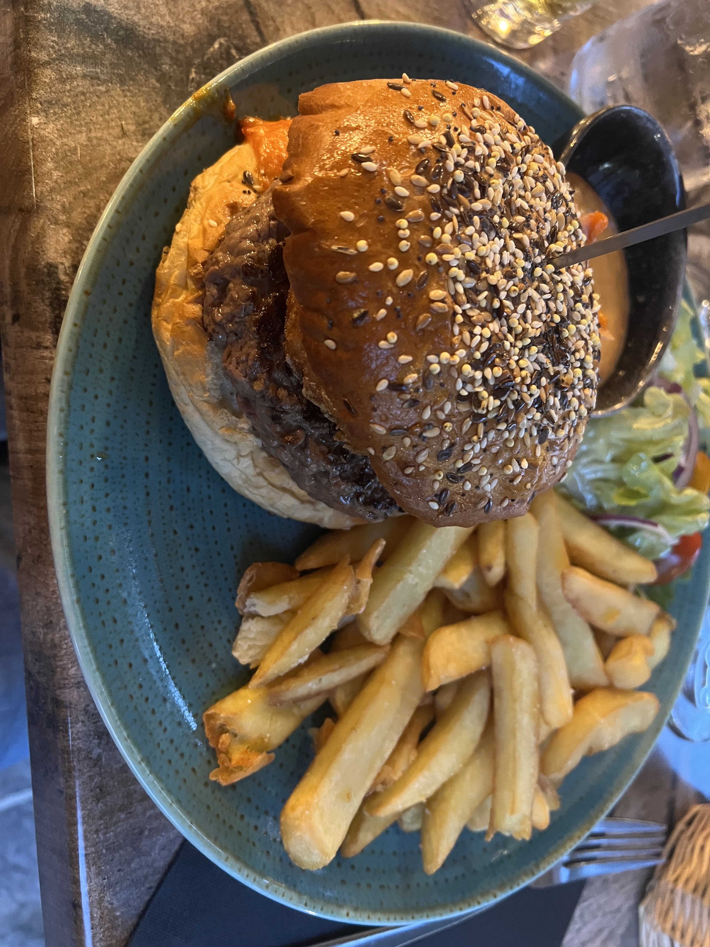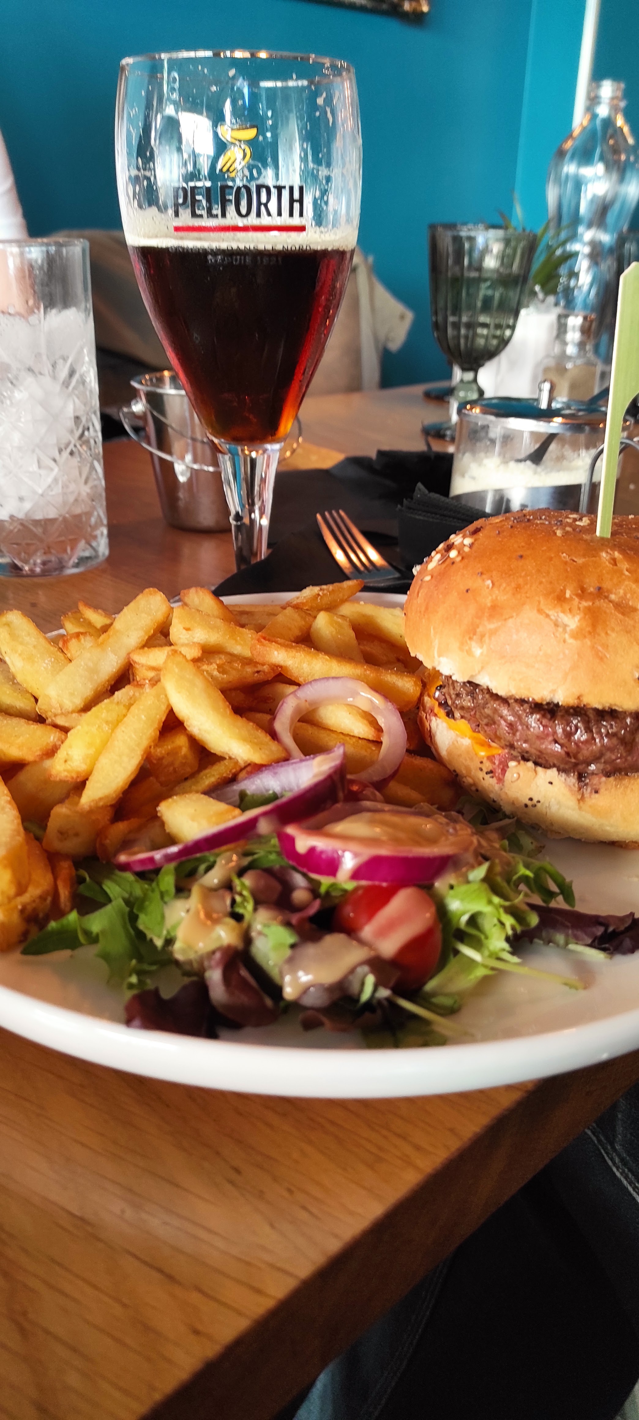 Lieu agréable et le service aussi ! Par contre niveau plats je ne comprends vraiment pas les commentaires si dessous ! Il n’y a que du congeler ! Rien n’est fait maison ! Le burger est un scandale en son nom ! Il est vide ! Pas d’oignons pas de salade pas de tomates juste un steak garni d’une tranche cheddar un un peu de sauce ! Et ça pour 21 euros ! Même le Mac do fait mieux à bon entendeur ! Donc cette clientèle qui donne des notes aussi hautes doit vraiment manger que des trucs en boites tout au long de l’année pour ne pas savoir apprécier un vrai restaurant ou tout est fait maison !