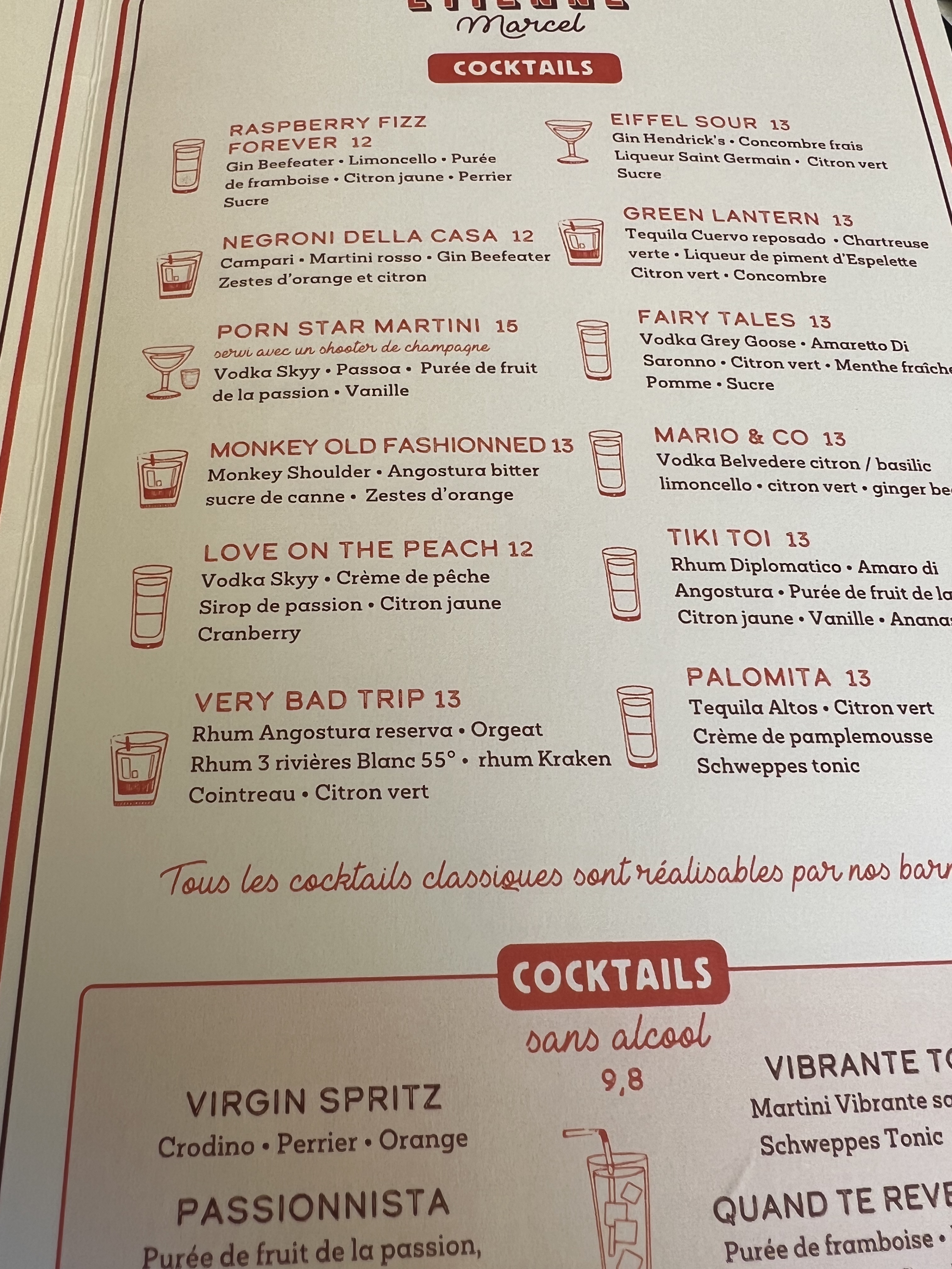 Cocktails et planches un peu cher, service pas forcément très rapide ou agréable mais les cocktails sont plutôt bons et sortent de l’ordinaire.
