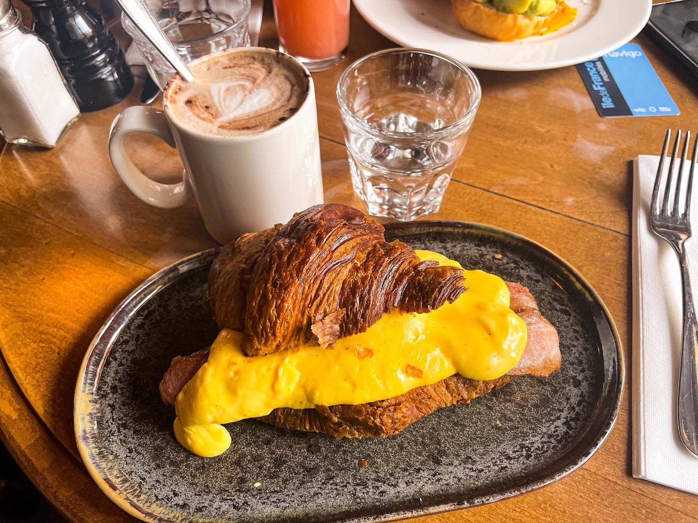Bon café, le croissant bénédictin était bon, le personnel (2 serveurs qui m'ont aidé) était sympathique et parlait anglais
