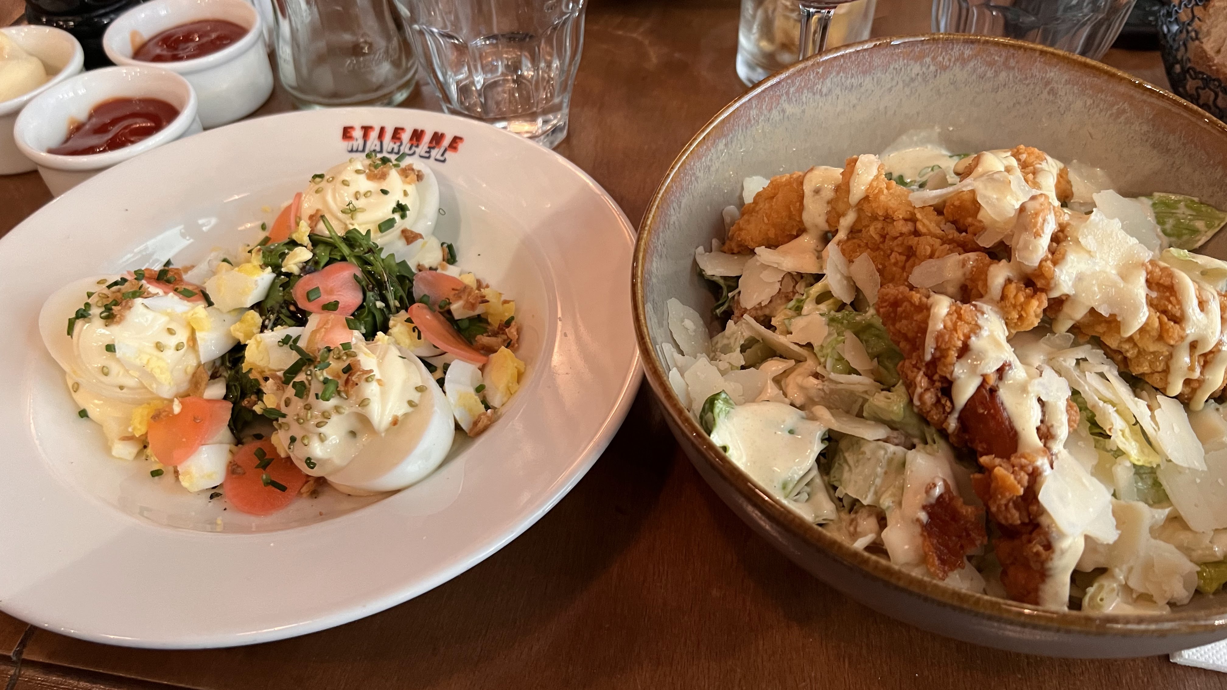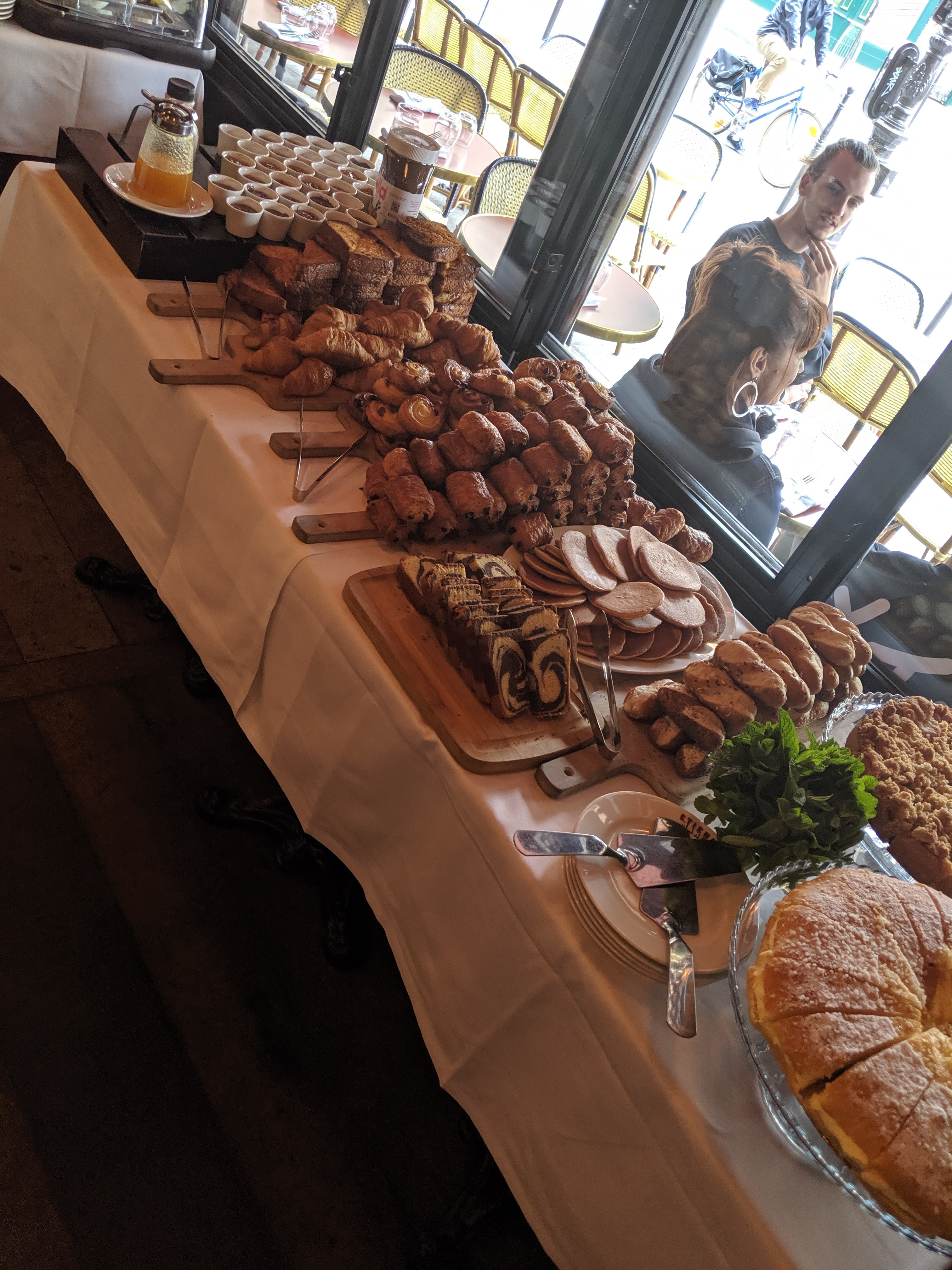 Je recommande particulièrement le brunch du Café L'Etienne Marcel. Pour moins de 40€, on vous propose un buffet à volonté composé uniquement de plats frais. Le choix est assez vaste, allant des fruits de mer (huîtres fraîches, etc.), divers fromages/jambons/saucisses, grand choix de pains et garnitures, jus de fruits fraîchement pressés, etc. Très bon service et l'endroit lui-même est spacieux et confortable.