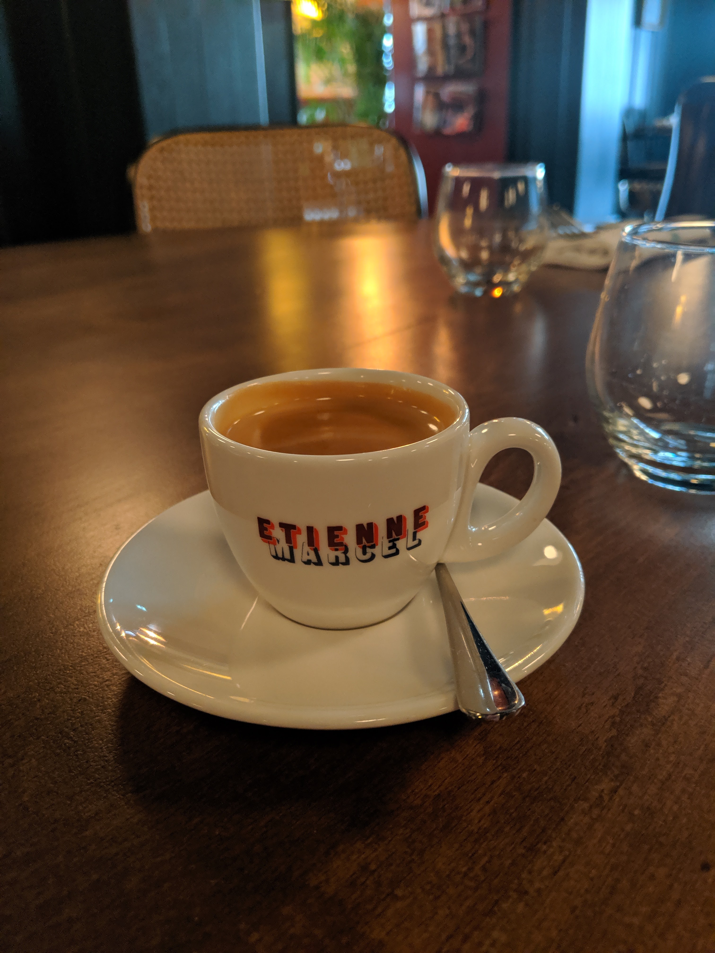 15 minutes d'attente pour 2 cafés fservis à peine tièdes et à moitié renversés (3 euros piece). Bravo les champion(ne)s !