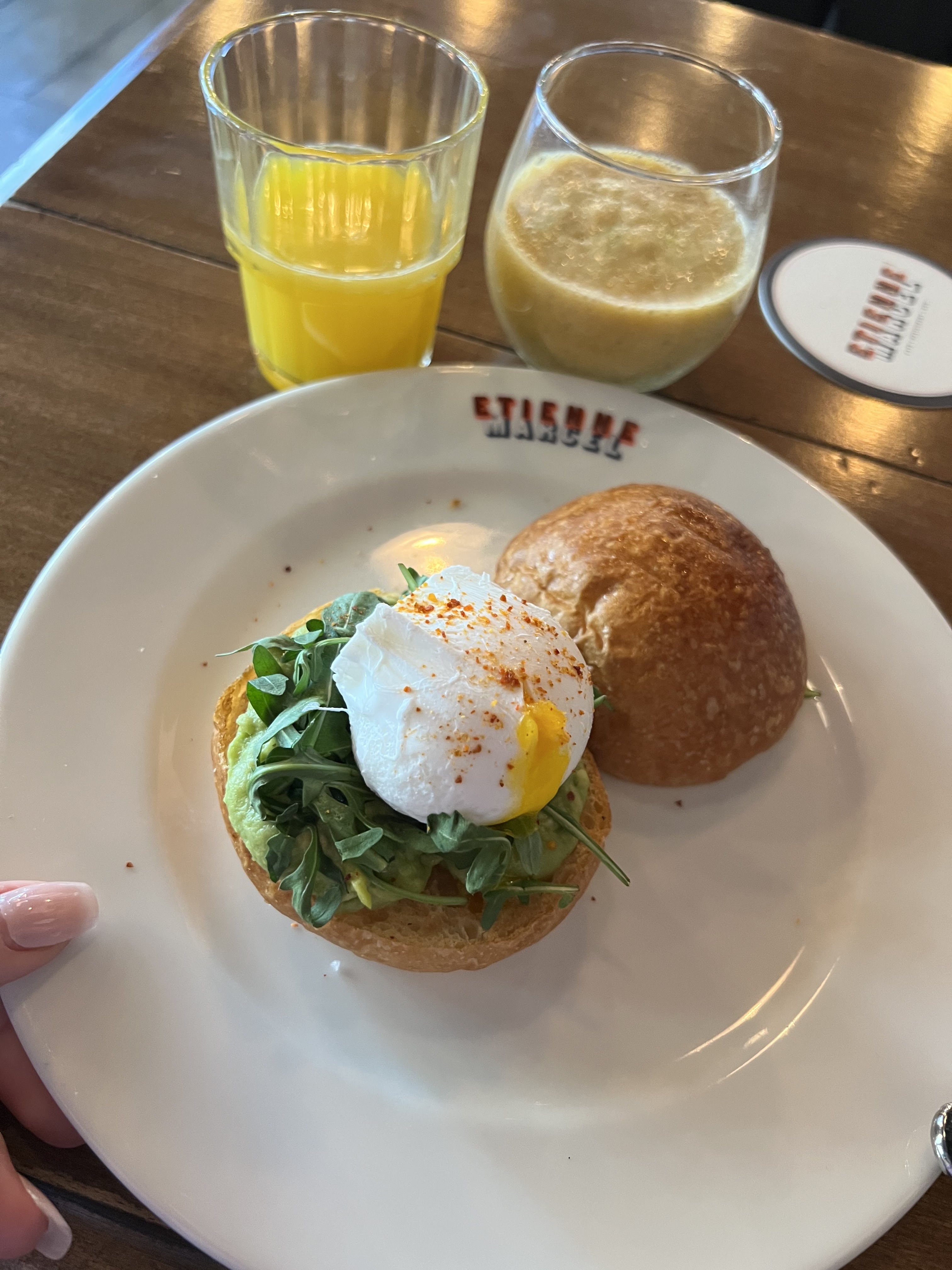 De passage à paris en famille, nous avons été très bien accueillis par le personnel. Nous avons pris la formule brunch à 23€ et nous nous sommes régalées, celui ci est assez copieux. J’ai adoré le granola maison, l’avocado brioché et le smoothie. Lieu agréable , nous avons passé un bon moment. La terrasse est au soleil vers 12h ce qui est très appréciable au beau jour.