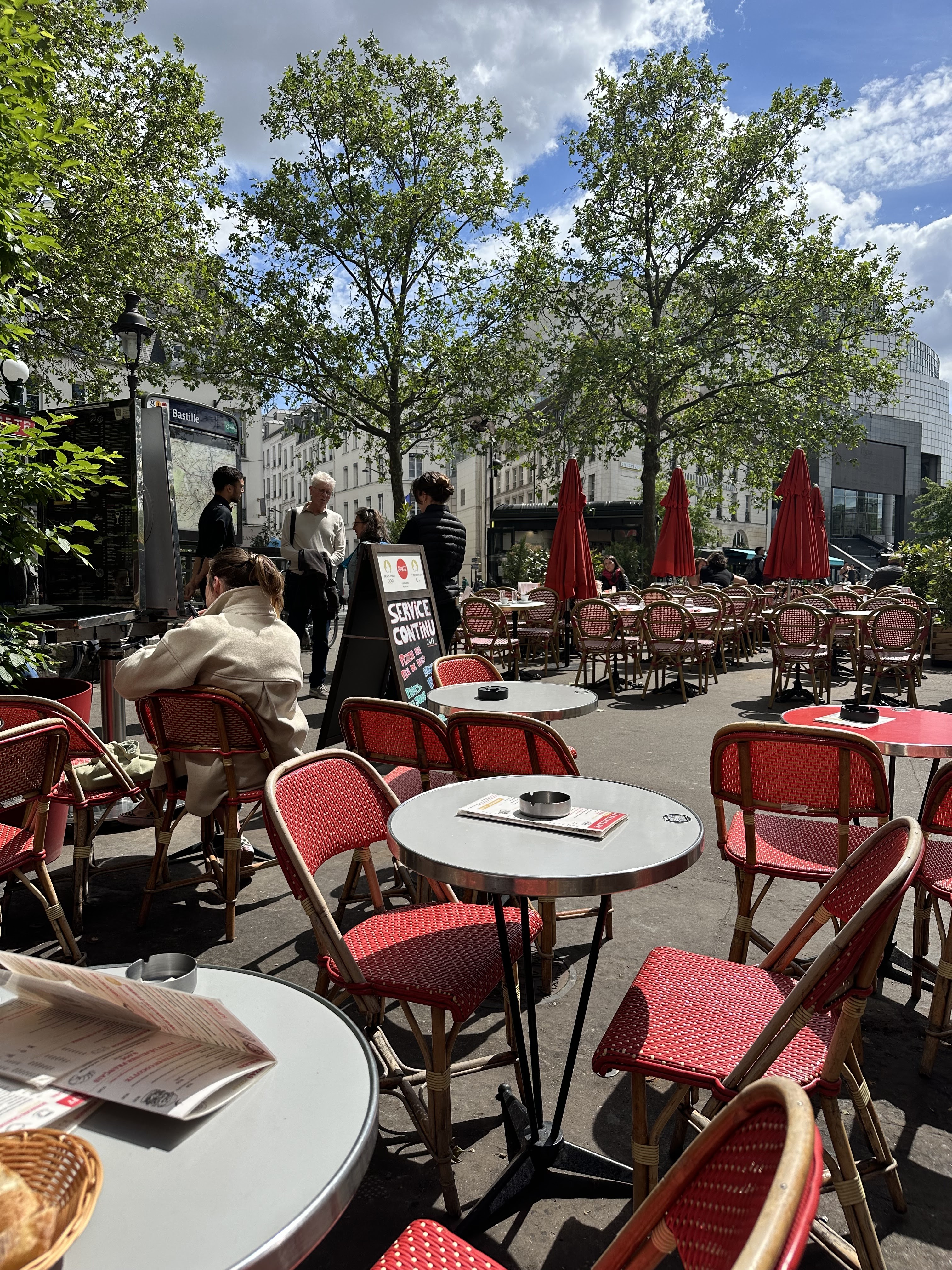 Service au top, le cadre permet de profiter pleinement de Paris (place de la Bastille). Une disponibilité optimale et un large choix quant aux produits proposés. Je recommande !!