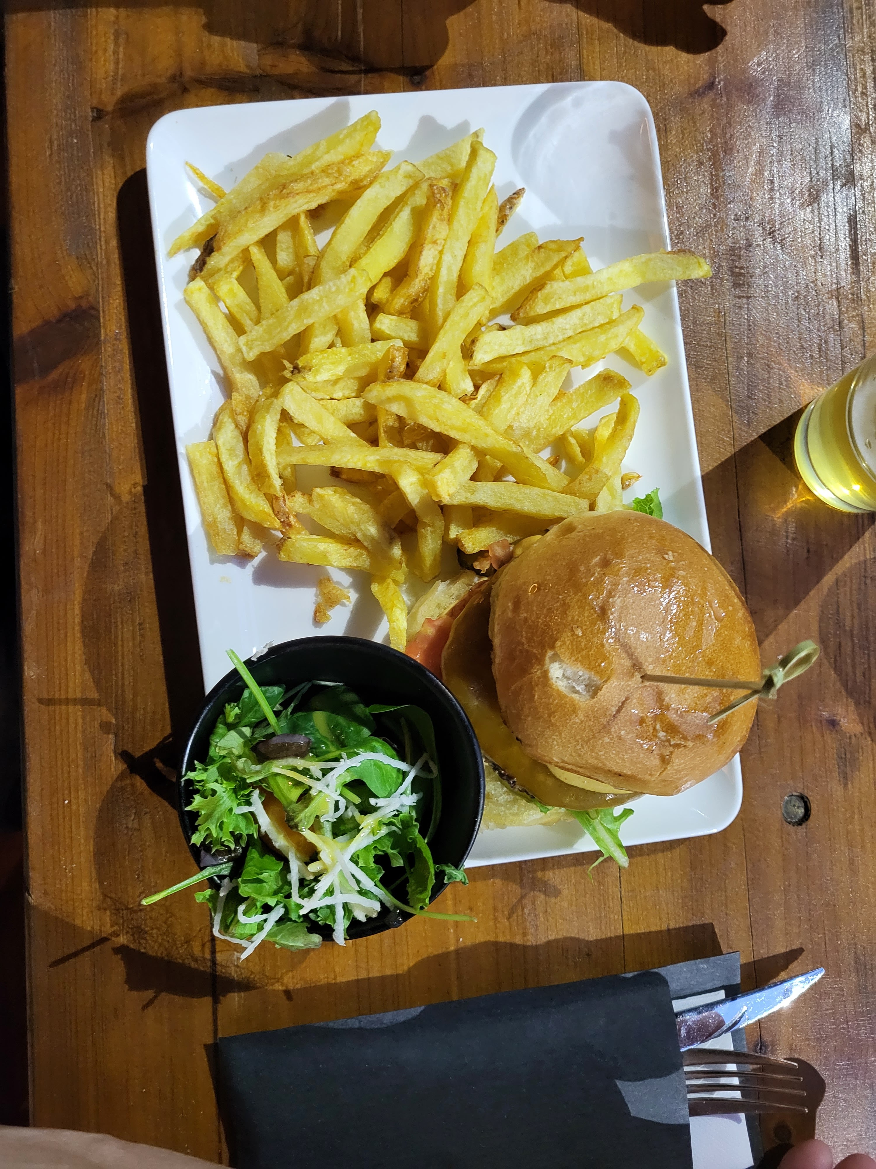 Le repas était simple un hamburger et une glace mais il était bon. On a bien mangé et la dégustation de bière était plaisante
