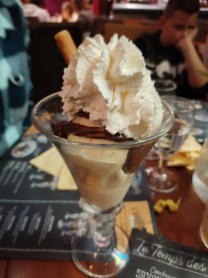 Endroit sympathique serveur tres agréable mais..... leurs coupes de glace... tres décevant. Certes la quantité y était mais la qualité non. Creme chantilly tiede et industrielle tres fade la glace et la sauce au chocolat quelconques !! Bref je ne me suis pas régalée.