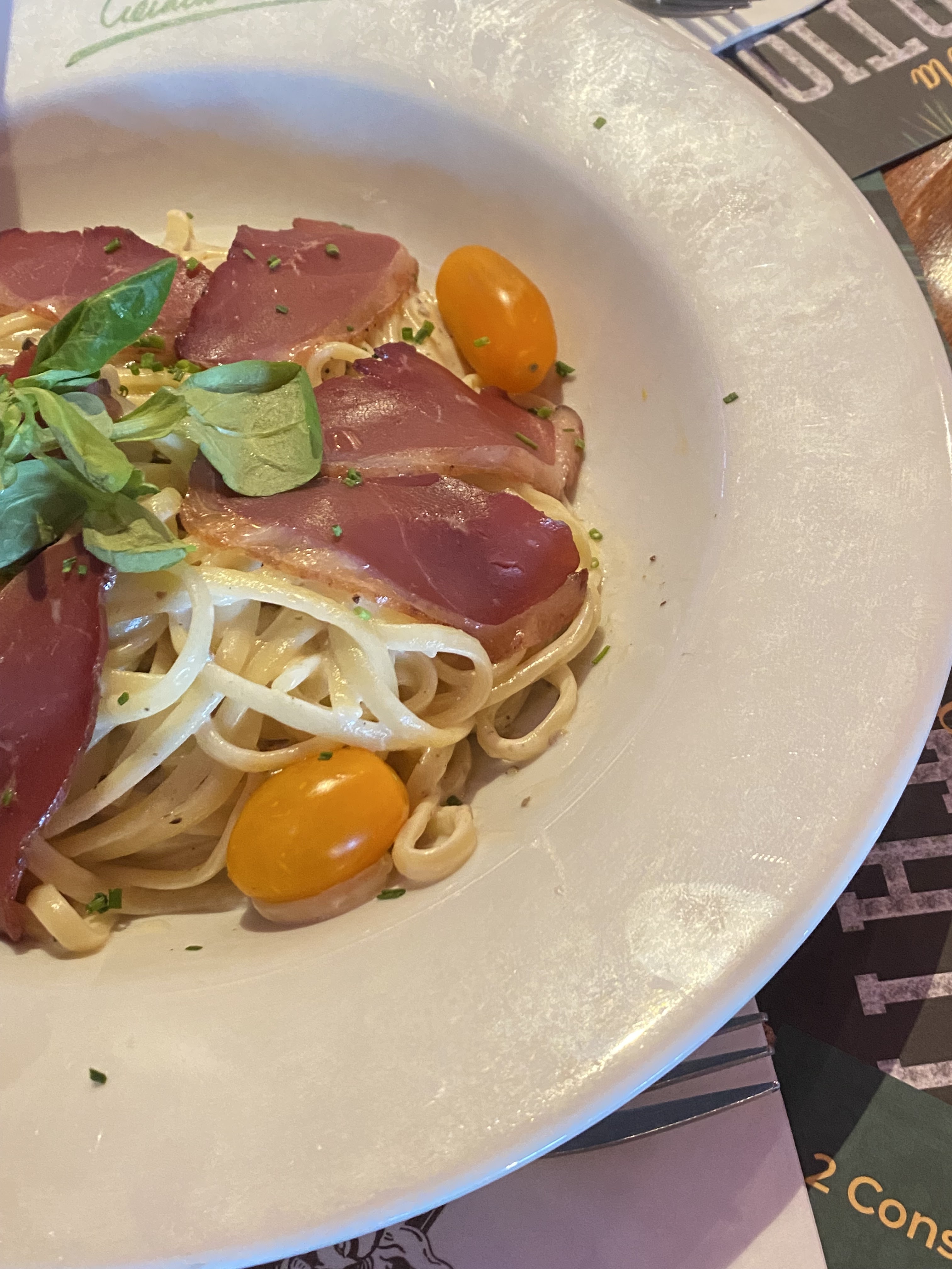 Lieu bien décoré mais pas du tout à la hauteur niveau cuisine ..plat a quasiment 20e.. Linguine a la sauce truffée et magret de canard fumé...plat fade avec une sauce je dirai toute faite qui n'avait pas le goût de truffe mais un arrière goût...très déçue d'autant plus que je ne l'ai pas mangé et qu'on nous a rien proposé en dédommagement puisque j'ai eu l'honnêteté de dire que ça n'allait pas.Pour une première fois je ne reviendrai pas pour manger.Le serveur était gentil.