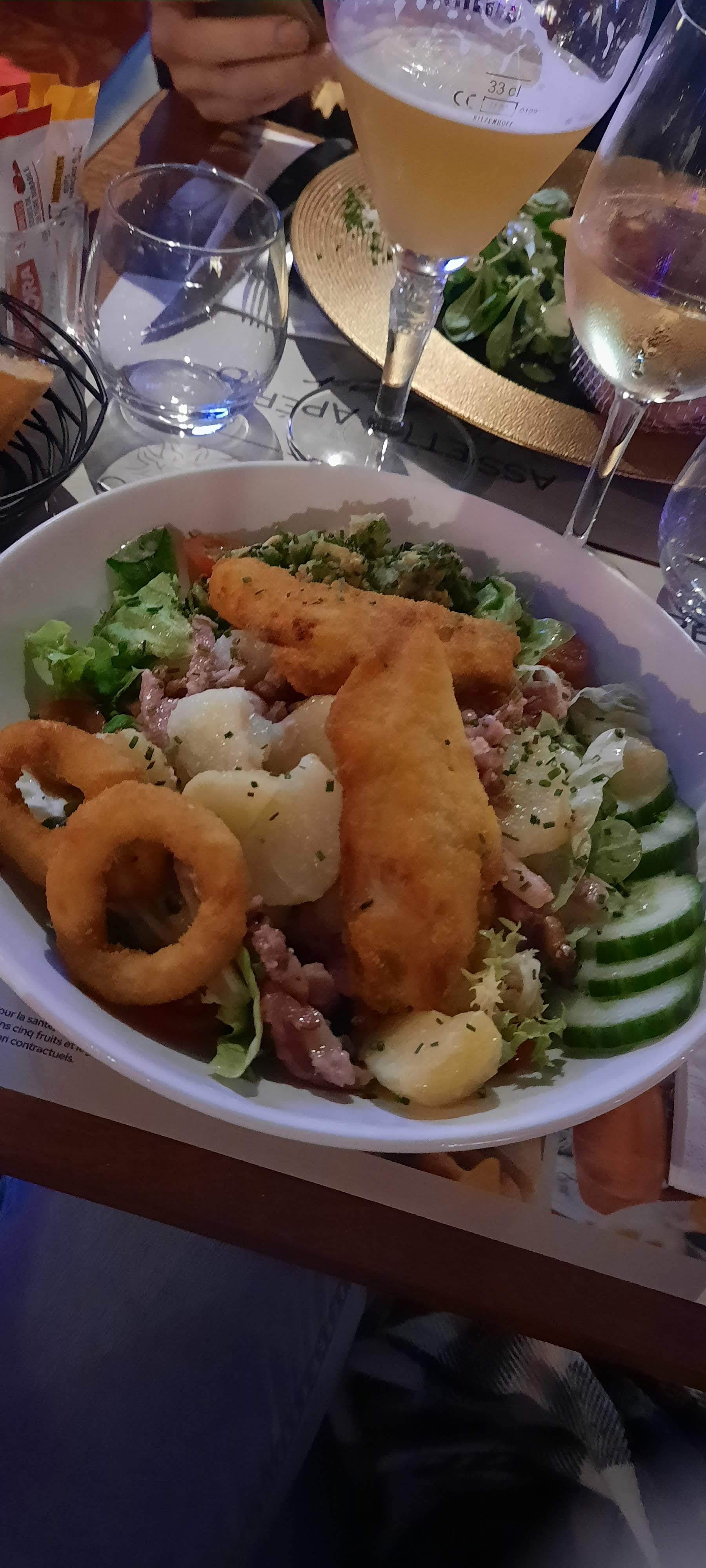 Serveurs très souriants et aimables ... l’assiette sans plus .. beignets de calamars pas assez cuits ... pas assez croustillant à mon goût ...brasserie beaucoup trop bruyante ....