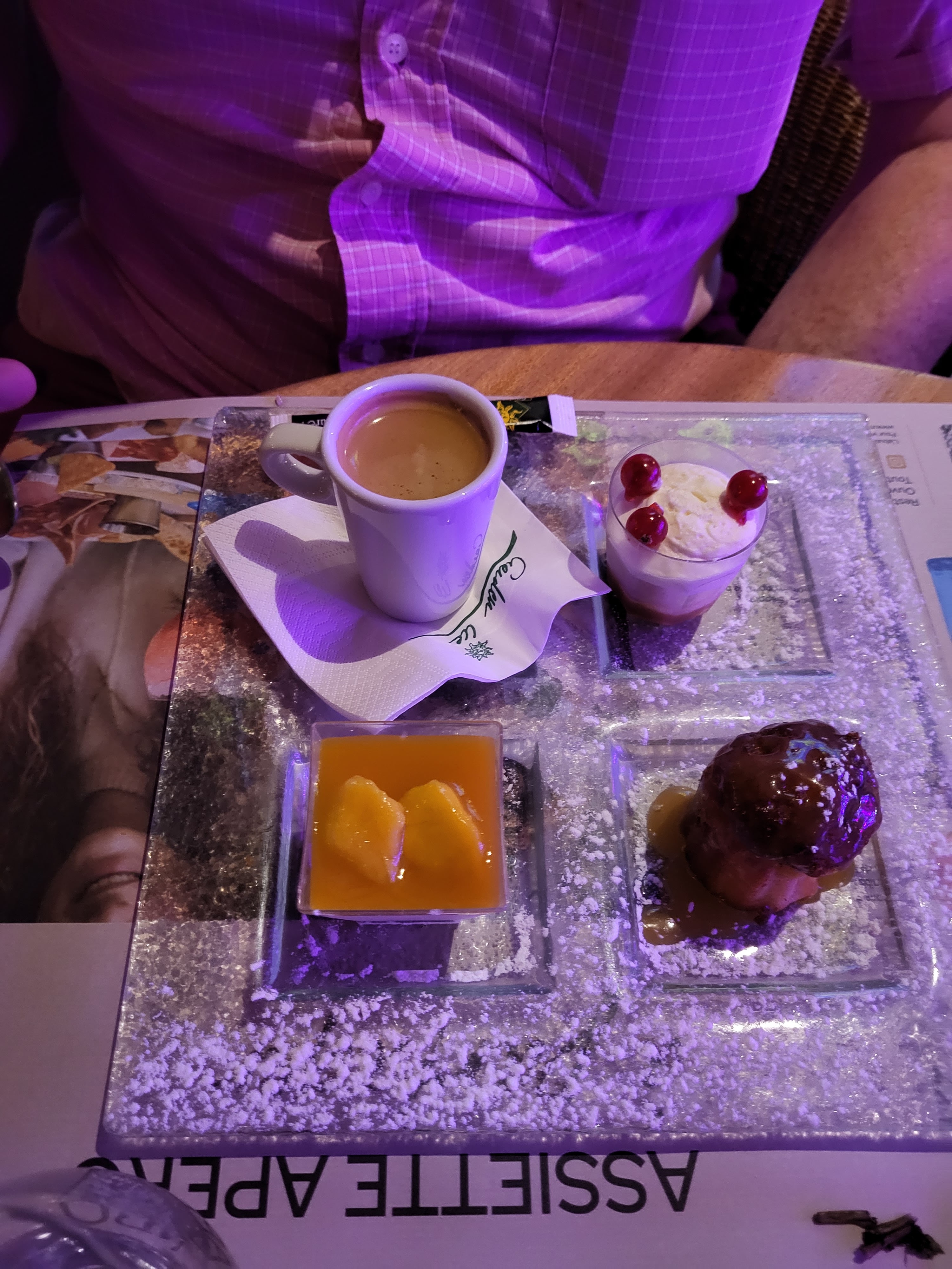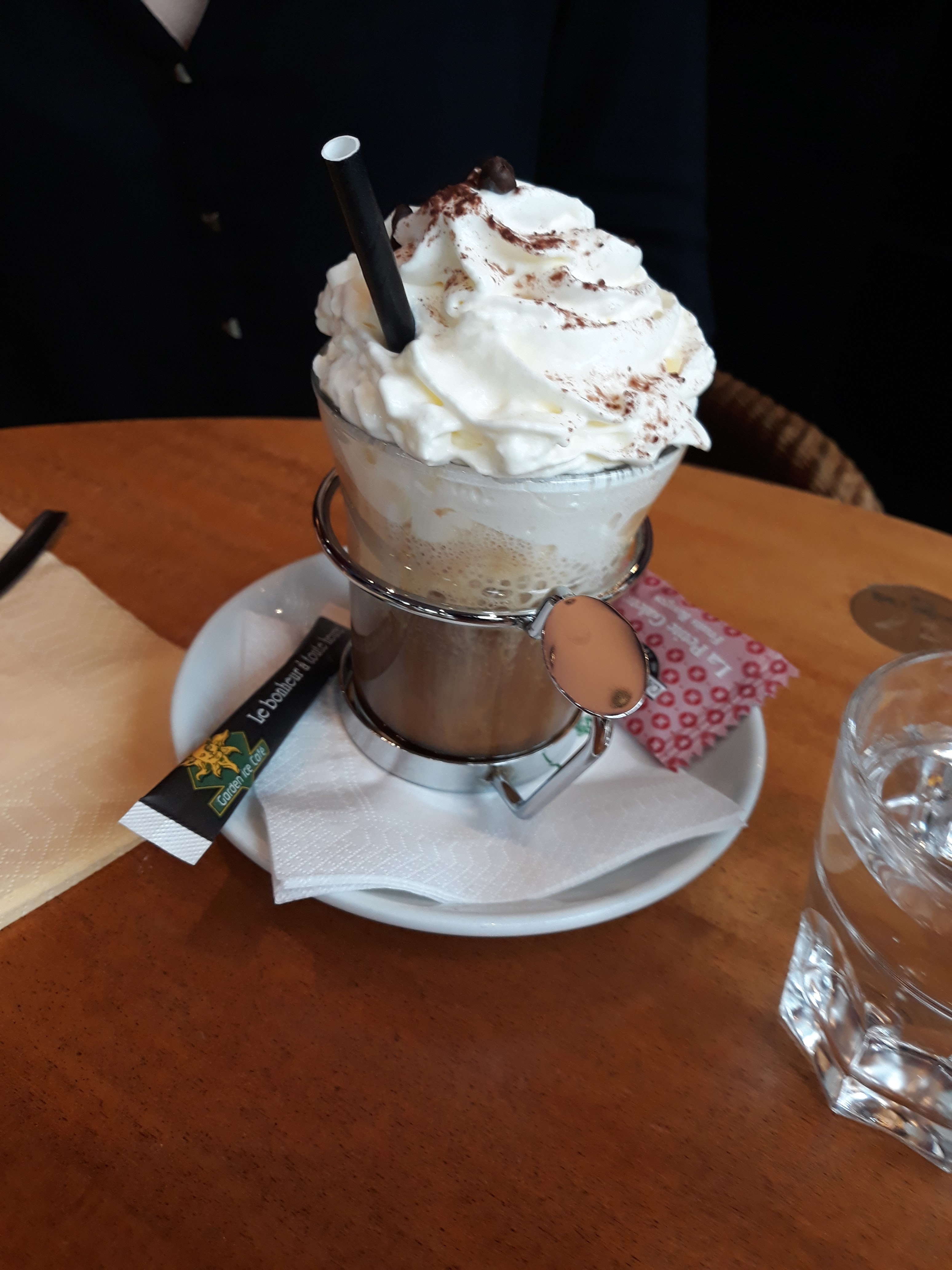 Nous sommes venus pour prendre un petit café. Le personnel est accueillant et agréable et le restaurant est bien situé. J'étais déçue par le café gourmand que j'avais pris. Il était composé de 3 gourmandises : un gâteau un peu sec avec de la crème en dessous, de la crème au goût de pistache que j'ai trouvé assez industriel et une crème brûlée. Ce n'était pas mal en globalité mais ce n'était pas à mon goût en tout cas.