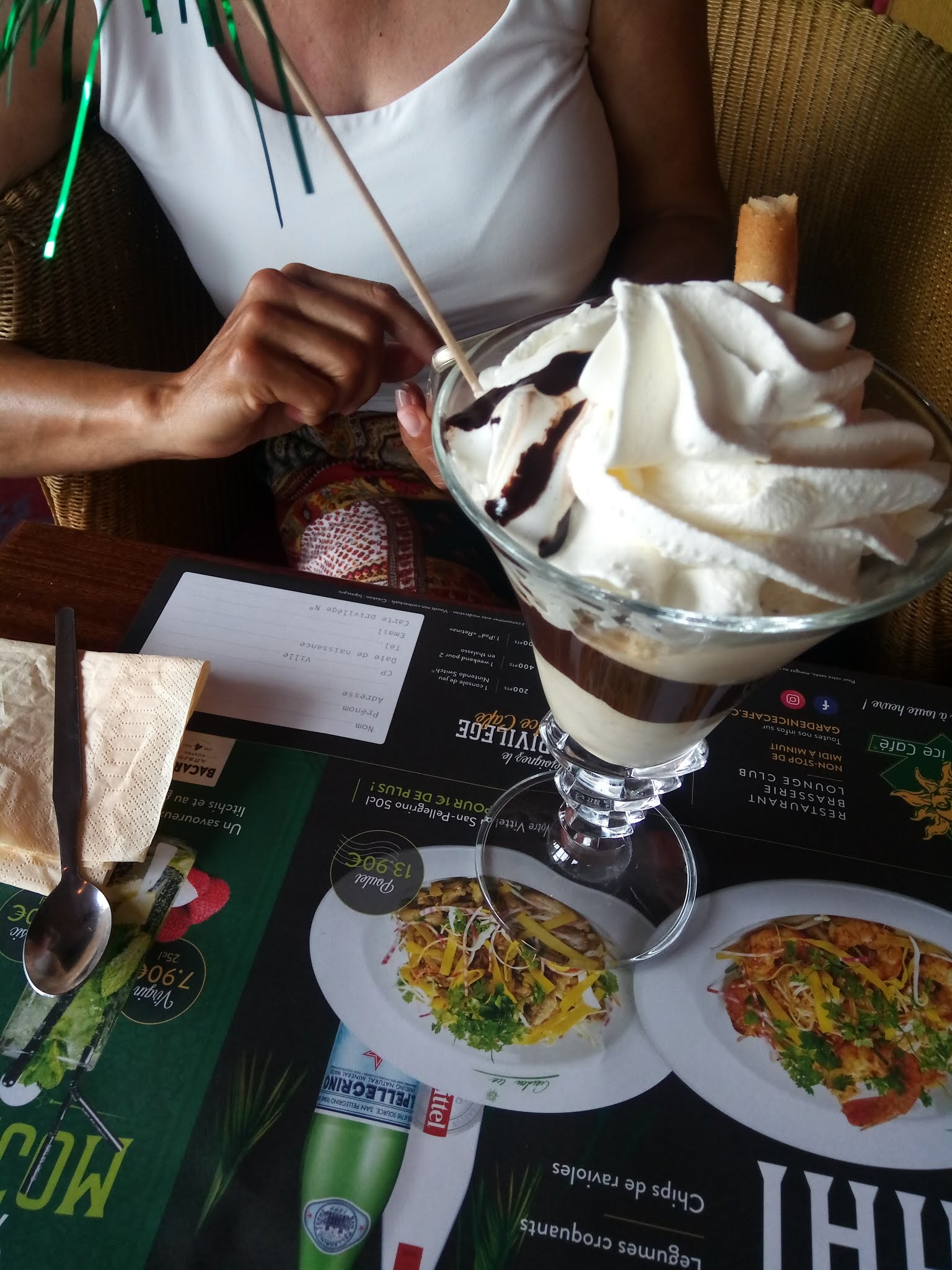 Nous sommes venus prendre un verre et déguster une coupe glacée. Le Garden Ice Café est un très bel endroit à la décoration originale j'ai adoré l'endroit. J'ai opté pour un mocktail sweetie Coco et ananas très bon. Mon mari a opté pour une coupe glacée saveur rocher Suchard qui était bien copieuse et très gourmande. Nous avons été très bien accueillis et les serveurs sont très attentifs et disponibles. Nous reviendrons avec plaisir pour dîner ou goûter.
