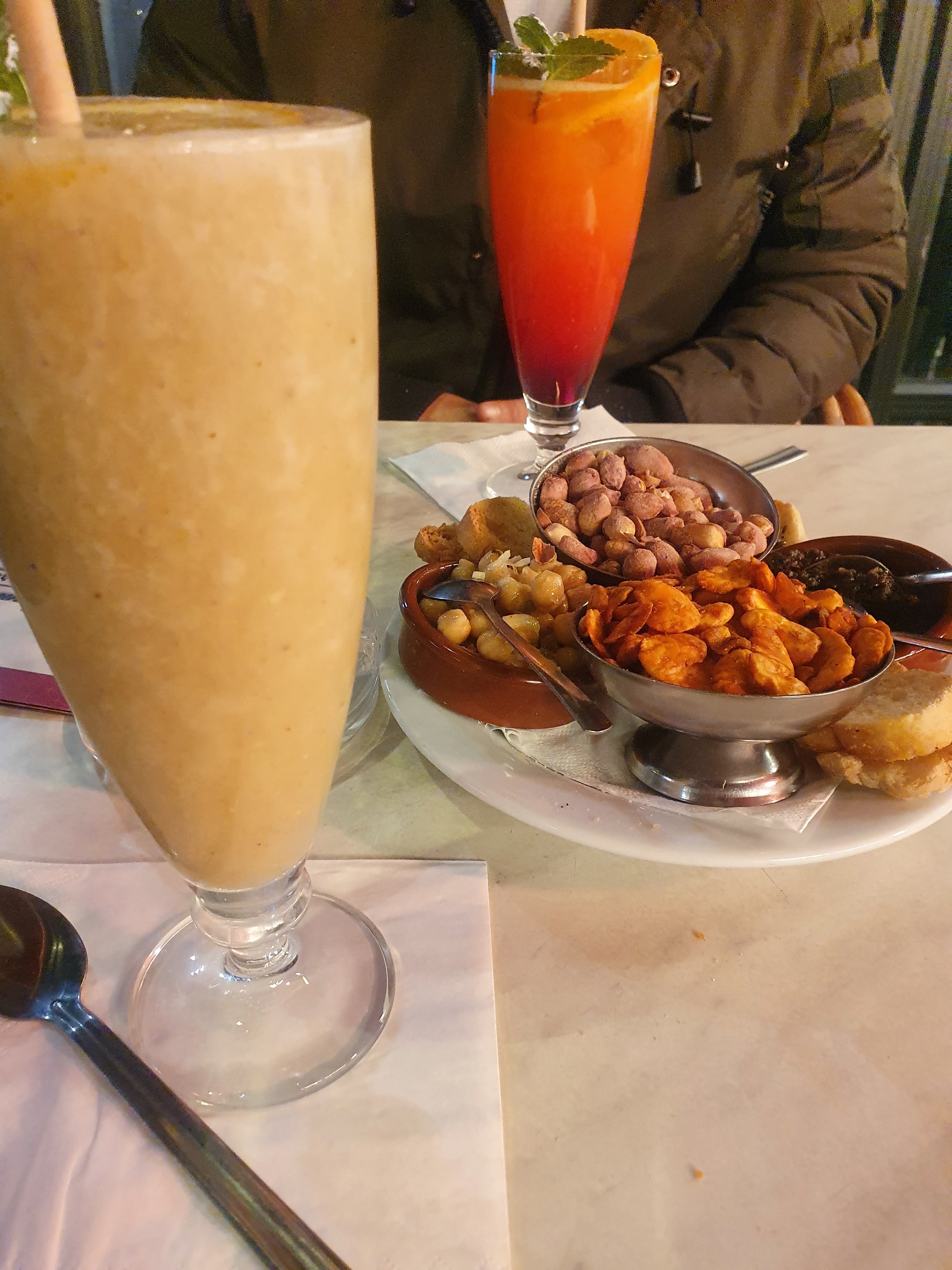 Serveur sympa, les boissons, jus de citron frais très rafraîchissantes et thé glacé maison, parfaites. Nous y reviendrons.