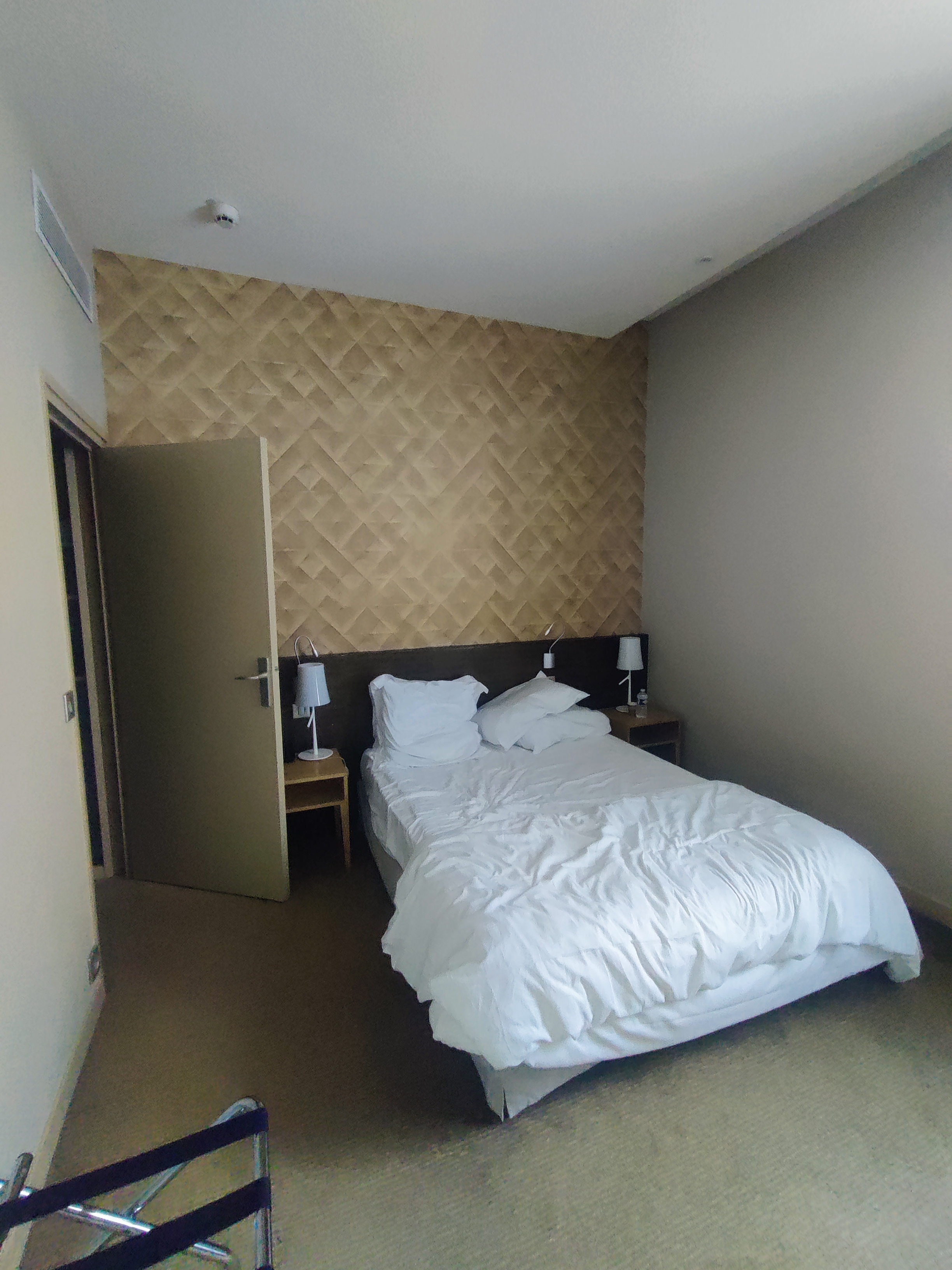 Chambre spacieuse et calme. Mal occultée par des rideaux qui ne correspondent pas à la taille des fenêtres, et qui sont mal accrochés. Spots manquants . Lumières débranchées, prises de courant rares, fatiguées (les appareils se débranchent seuls), Literie asymétrique : un matelas à ressorts, un matelas à mémoire de forme, le tout pour un (faux) king size (180 cm) donc. Tarifs plutôt élevés. Pas de stylos, papiers, livret d'accueil, le réassort des sachets de boissons, sucres est au petit bonheur-la-chance, peignoir taille enfant (il m'a fallu attendre 1 semaine pour en avoir un à ma taille)...la veille de mon départ certes improvisé 🛑 Évitez le restaurant🛑 Il est hors de prix considérant ce qui est servi: carottes râpées, fruits en salade, rumsteak sur nouilles chinoises.. Rien que vous ne puissiez faire à la maison. L'hôtel étant situé au plein centre, de nombreux établissements proposent des menus diététiques réellement cuisinés maison, à partir de 16€. Le petit déjeuner est varié et copieux, mais à 17€, on pourrait espérer ne pas se faire réprimander par la serveuse à 9h18 alors que le restaurant ferme à 9h15 . Suite à mon désistement des petits déjeuners, j'ai obtenu des excuses écrites de la direction. À mon avis, cet établissement n'est pas à la hauteur de sa sublime façade et de ses 4 étoiles