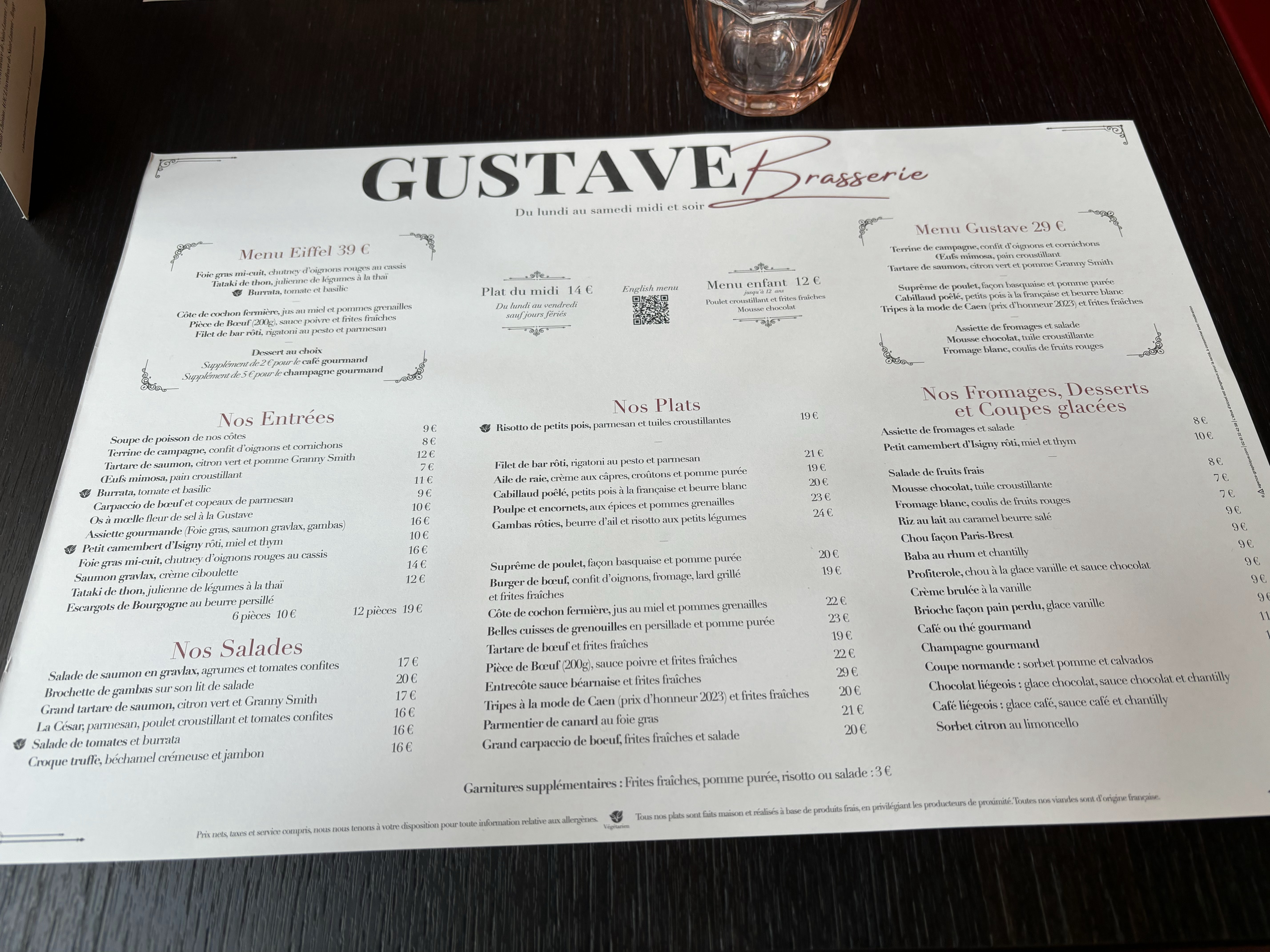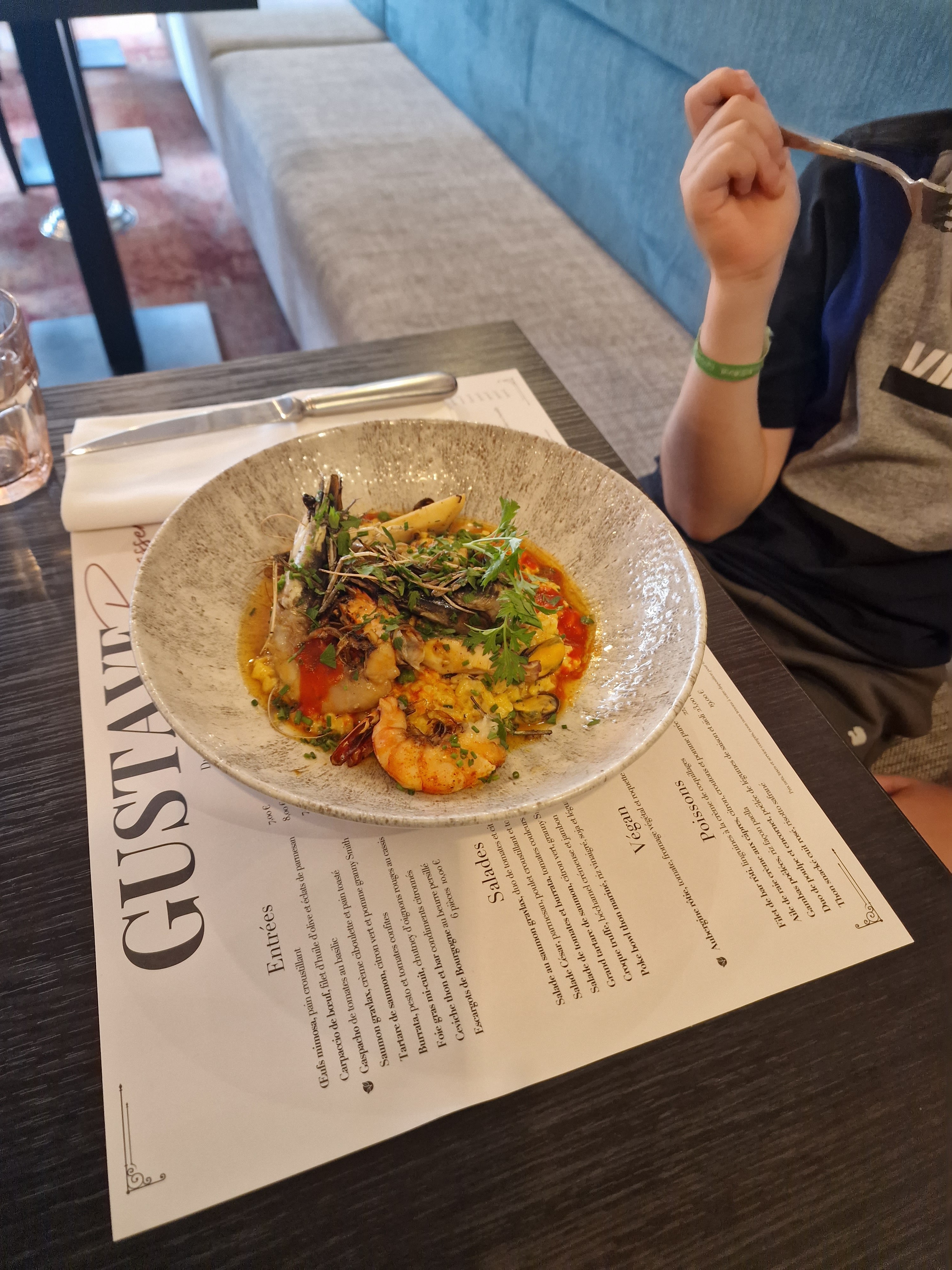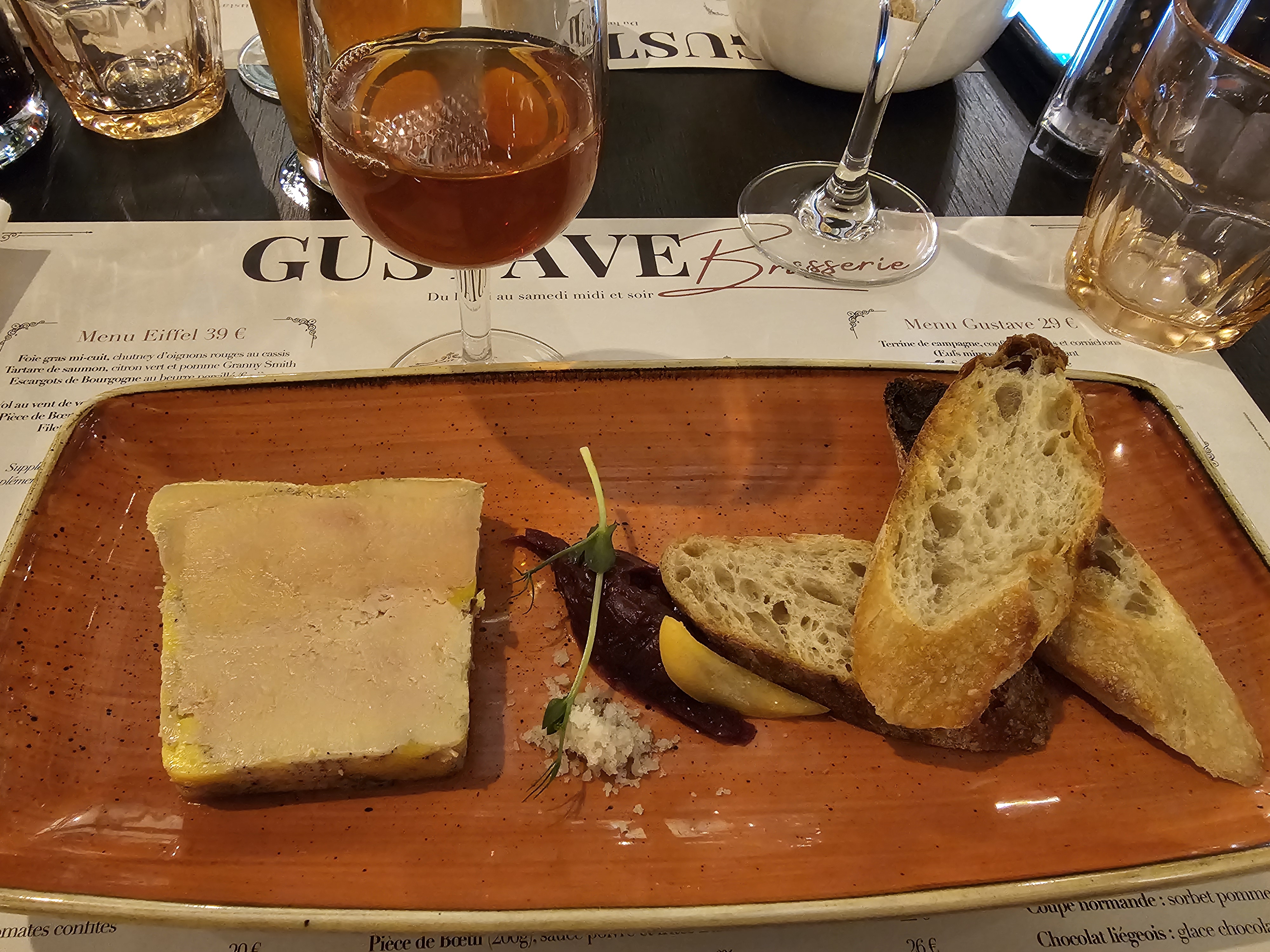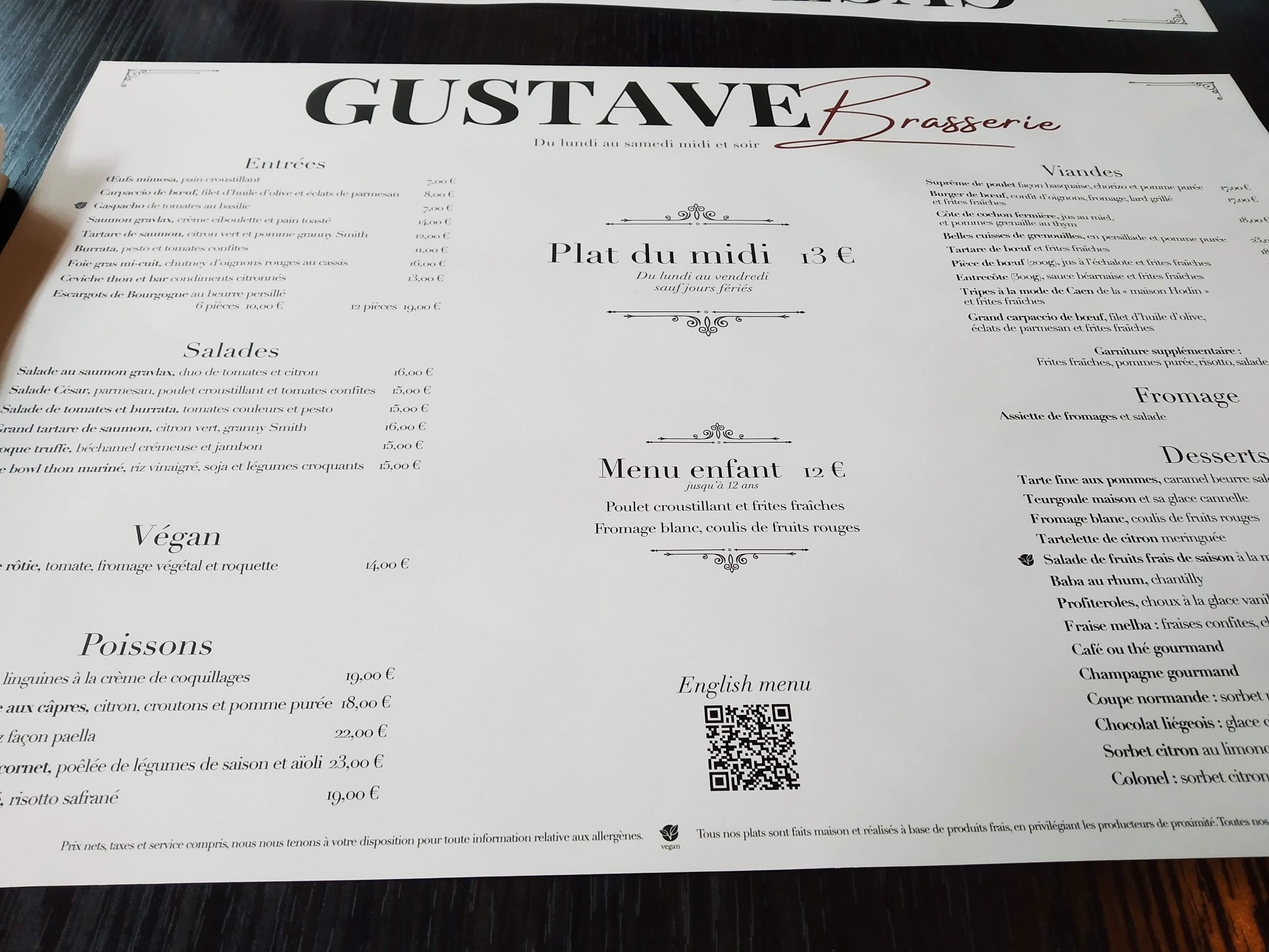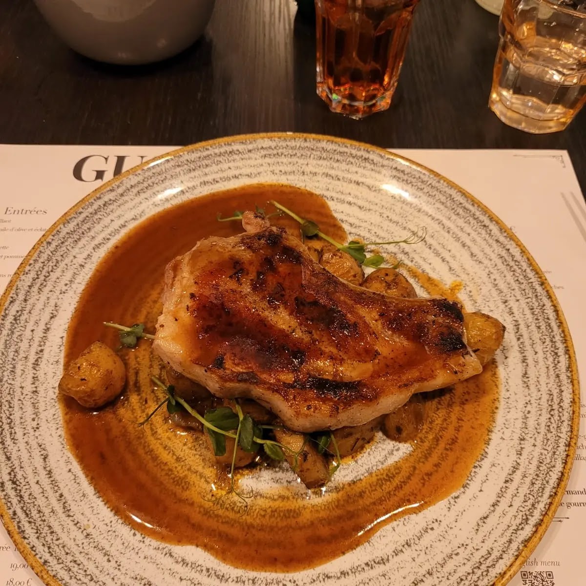 Quel plaisir d’arriver chez Gustave ! Accueil chaleureux, service impeccable, personnel très agréable. Un régal dans les assiettes! Je suis trop gourmande pour recommander un plat plus qu’un autre 😋…(le foie gras est excellent). Gustave c’est un lieu enchanteur et un moment suspendu qui réchauffe le cœur et les papilles.