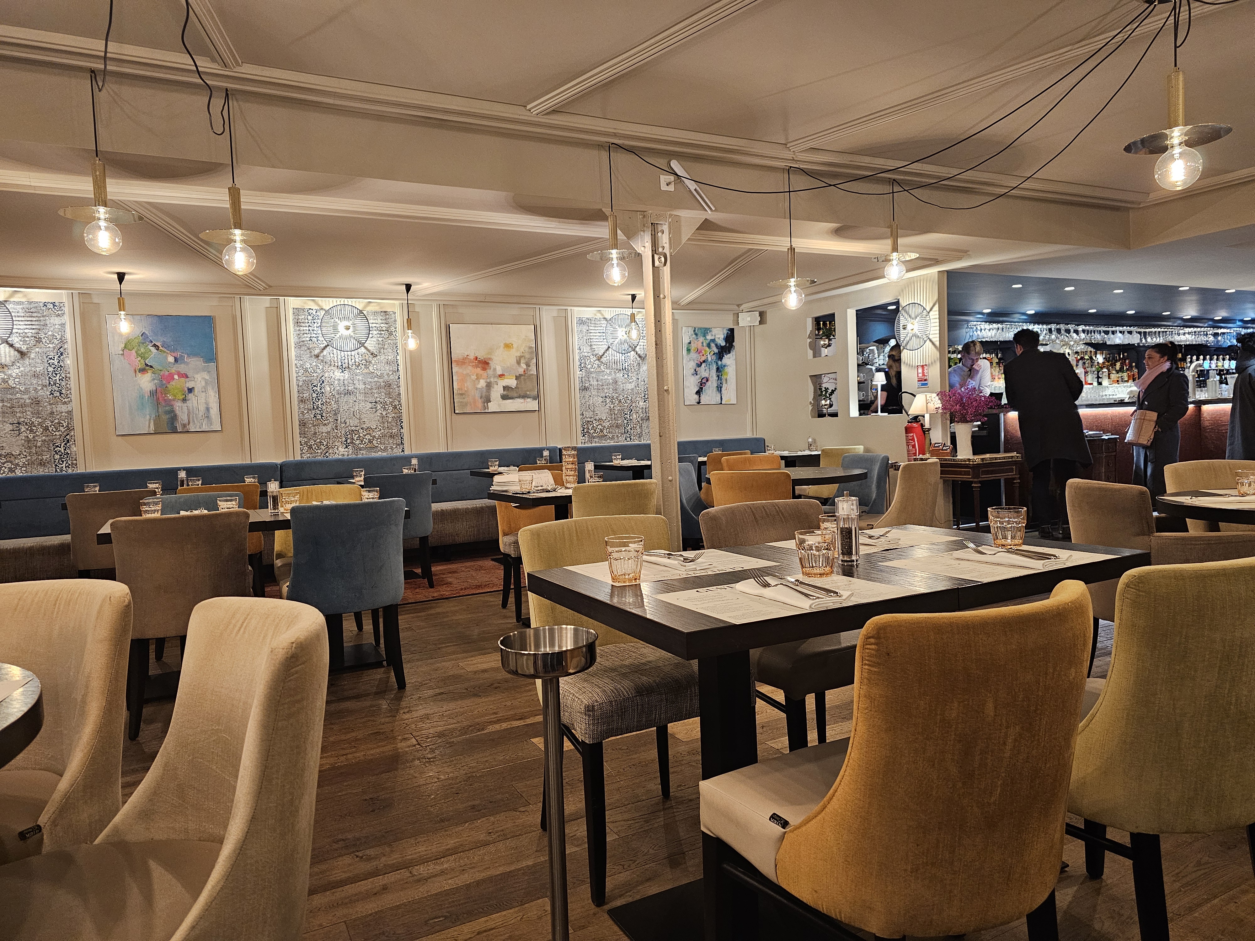 Dans un cadre assez chic et chaleureux, des plats assez traditionnels français. De bonne qualité, quantité suffisante, personnel et cadre agréable. Personnel compétent et pro. Je recommande.
