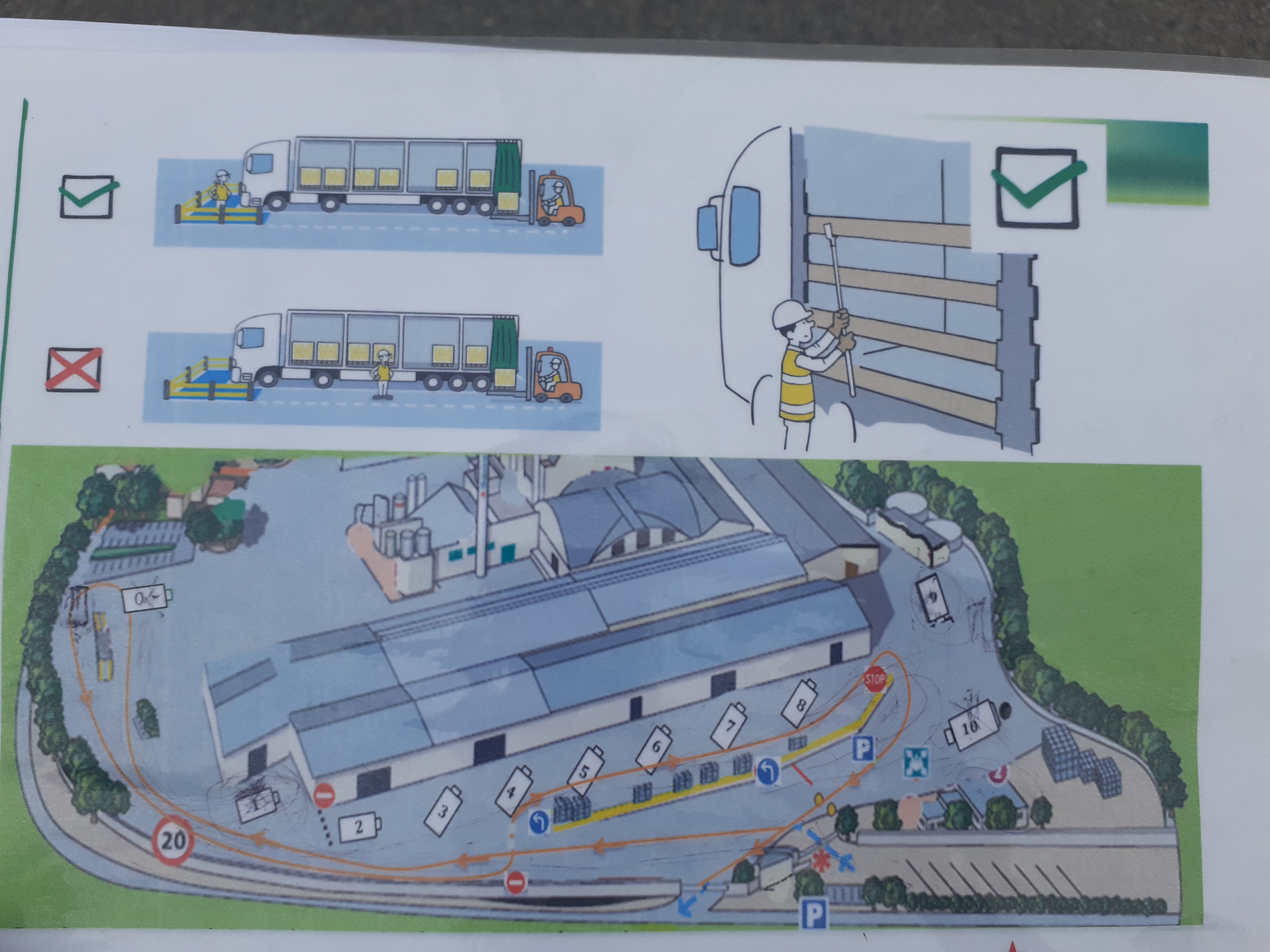 Absolument prévoir un casque de chantier ....présenter son permis de conduire ...se débarrasser des bijoux etc etc ....se présenter uniquement avec une semie bâchée tautliner car pas de quais .....
