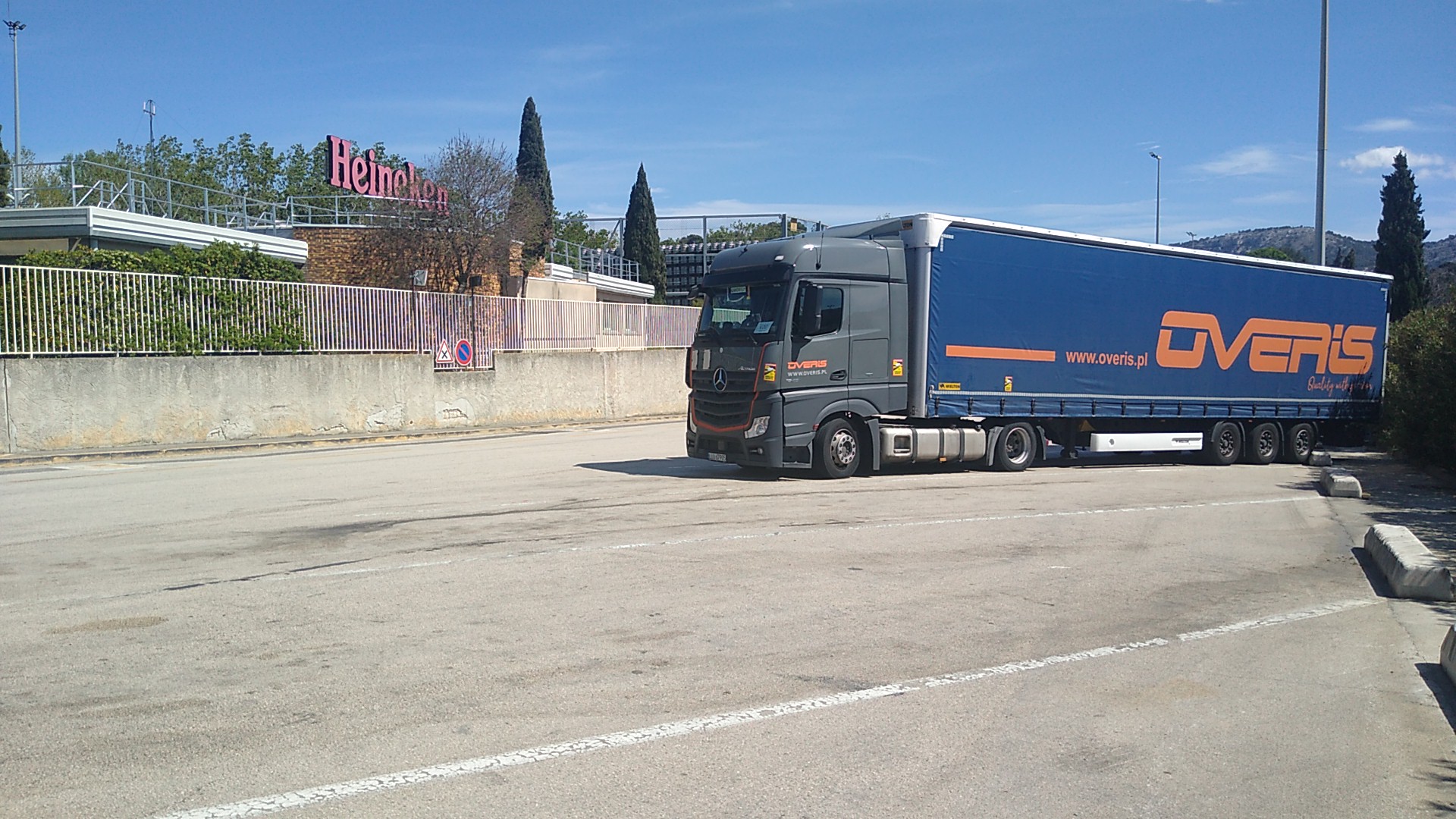 Le déchargement est chronométré, vous ne pouvez pas passer la nuit sur le parking, vous devez ouvrir les deux côtés lors du déchargement... Il y a une douche et des toilettes.