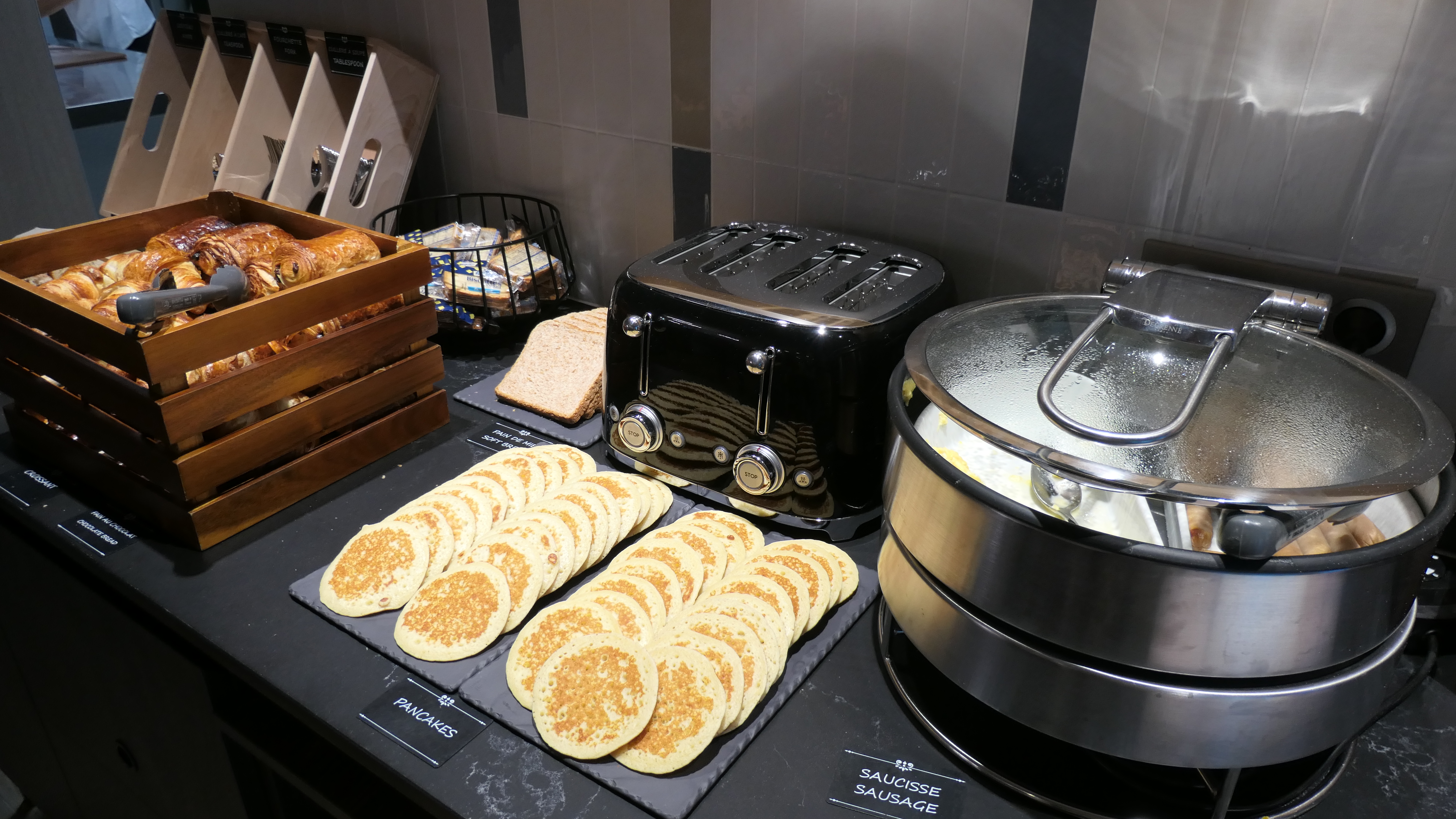 Petit déjeuné varié, mais limité en quantité pour quelques éléments fondamentaux. à 7h45 restait un morceau de pain d' env. 10cm sec + un bout de baguette de 4 cm. A ma demande pour avoir de la baguette, la préposée au petit déjeuner me répond qu'elle va voir mais n'est pas sûr qu'il en reste. Une baguette est arrivée 20mn après ma demande. Confitures, beaucoup de choix, mais avec des pots presque vides. Oeufs brouillés après 30mn plat toujours vide!! Charcuterie que 4 morceaux sec de chorizo.Tout ça pour 14€. Reste en suffisance pour américains