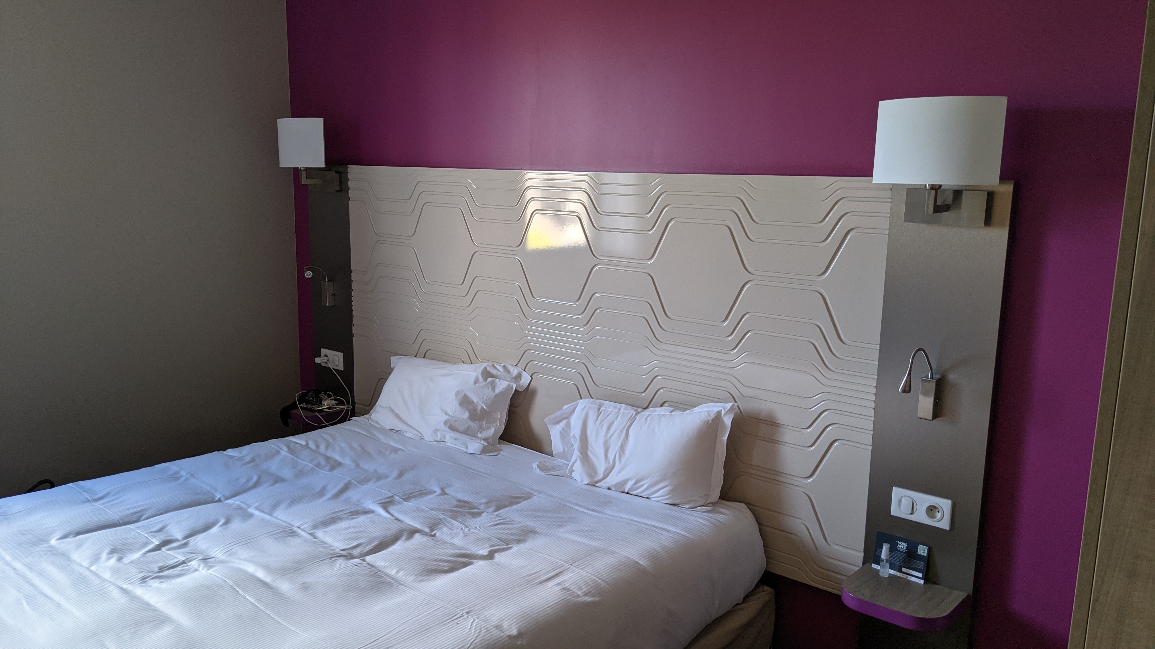 Couverture sale, et lors de la réservation prix n incluant pas le petit dej , pas très clair sur le site ...jeu de mots entre option et compris.😒😒😒 donc mauvaise surprise en arrivant... le prix de 97 euros est sans petit dej c est très élevé au vu de la chambre😌