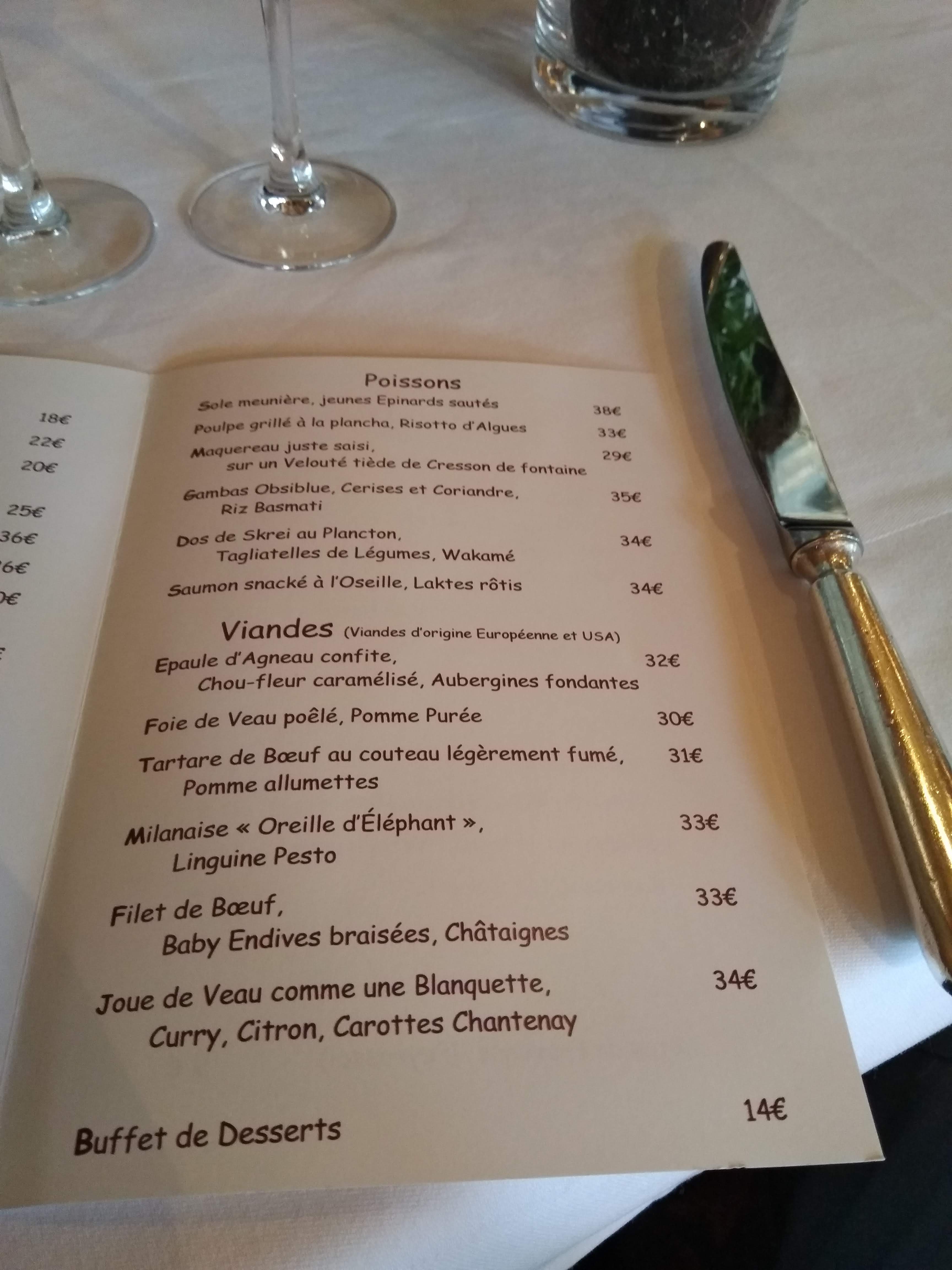 Restaurant< le Blizzard> une cuisine de qualité. Le cadre est très charmant. Nous avons pris en entrée le homard style pot-au-feu, un régal. En plat chaud, j’ai pris riz de veau avec des Cardon et des châtaignes. C’était tout simplement délicieux, succulent. J’ai adoré. Mon mari lui a pris les noix de Saint-Jacques. Dommage, il y en avait trois dans toute l’assiette et une petite traînée de purée de céleri. C’était vraiment faible. En dessert, j’ai pris comme un opéra , j’étais agréablement surpris de la revisite de se dessert . Le dessert de mon mari a lui étais une poire poché crème glacée aux yuzu un pur délice. Je recommande chaudement.