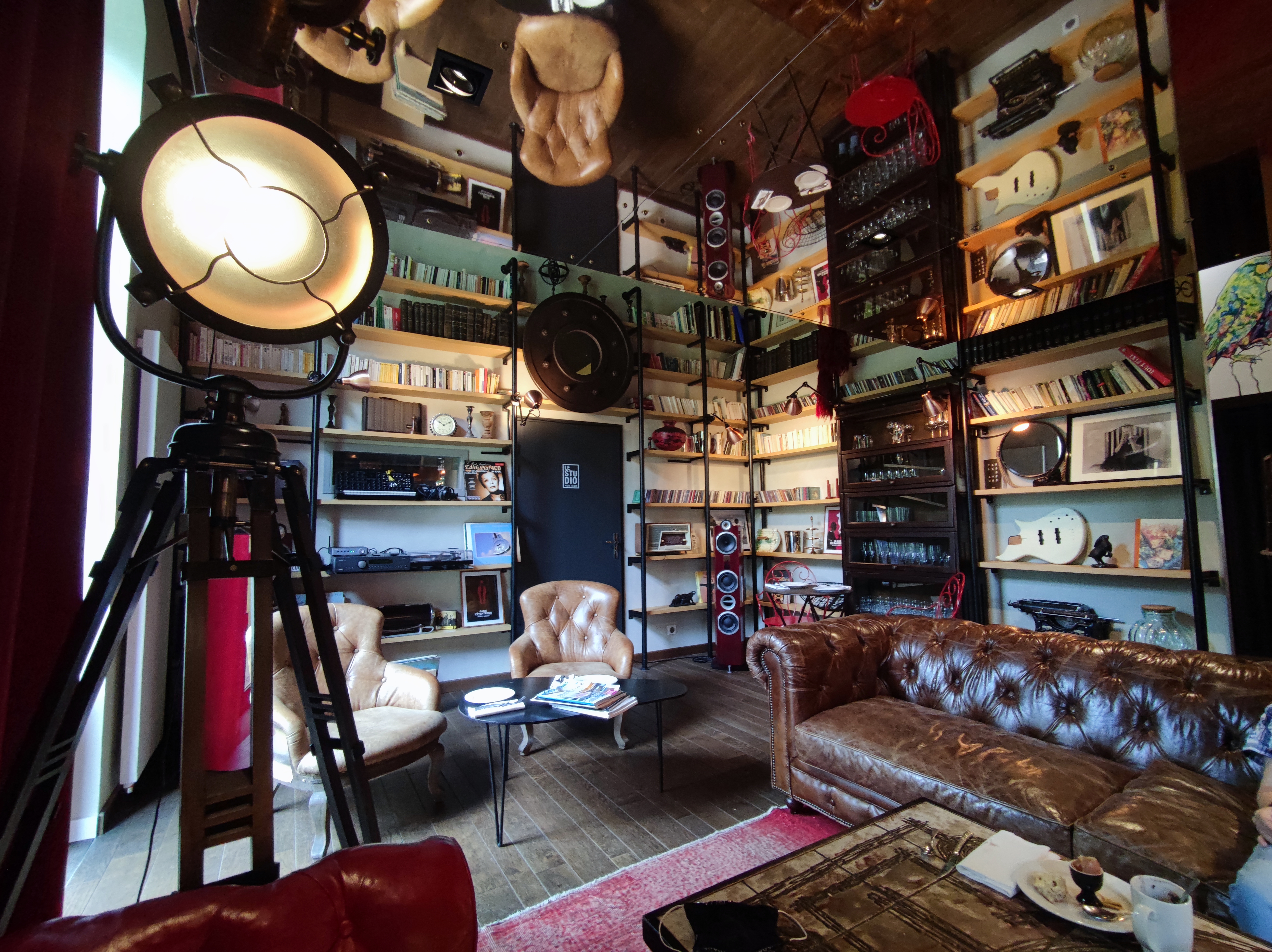 Ne vous fiez pas à l'aspect extérieur plutôt austère car une fois la porte ouverte vous découvrez un autre monde ! Petit coin cocoon et chatoyant pour un verre ou le grand chesterfield entre amis. Il y a même un studio d'enregistrement ! Cet endroit vaut vraiment le détour