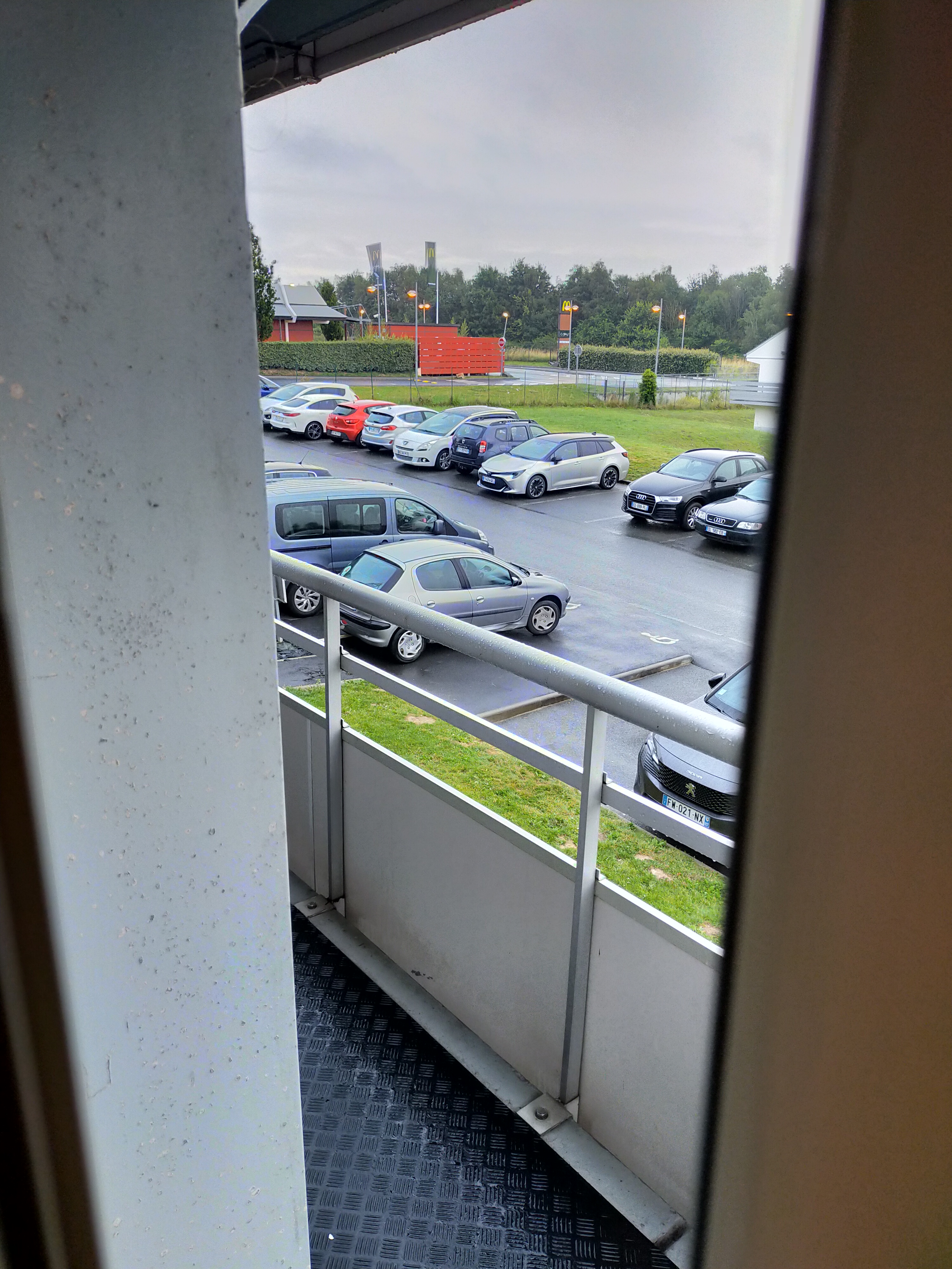 Arrivés sur le parking accueillis par 2 chiens agressifs appartenant à des clients, arrivés dans le hall des draps au sol avec un seau d'eau sale avec la serpillière à côté, la femme à l'accueil avec un fort accent nous dit que notre chambre n'est pas dispo avant 15h alors que la réservation commence à 14h, on nous propose à la place une chambre handicapés avec 2 lits, au final avons notre chambre au bout de15 minutes totalement trempée, les draps sales et seau avec la serpillière devant la porte ( sympa l'accueil ) , le parking n'a pas été fermé la nuit alors que c'est indiqué fermé sur votre site, douche peu pratique et petit déjeuners servi dans des sacs kraft comme chez mc do, dommage je n 'arrive pas a transférer mes photos