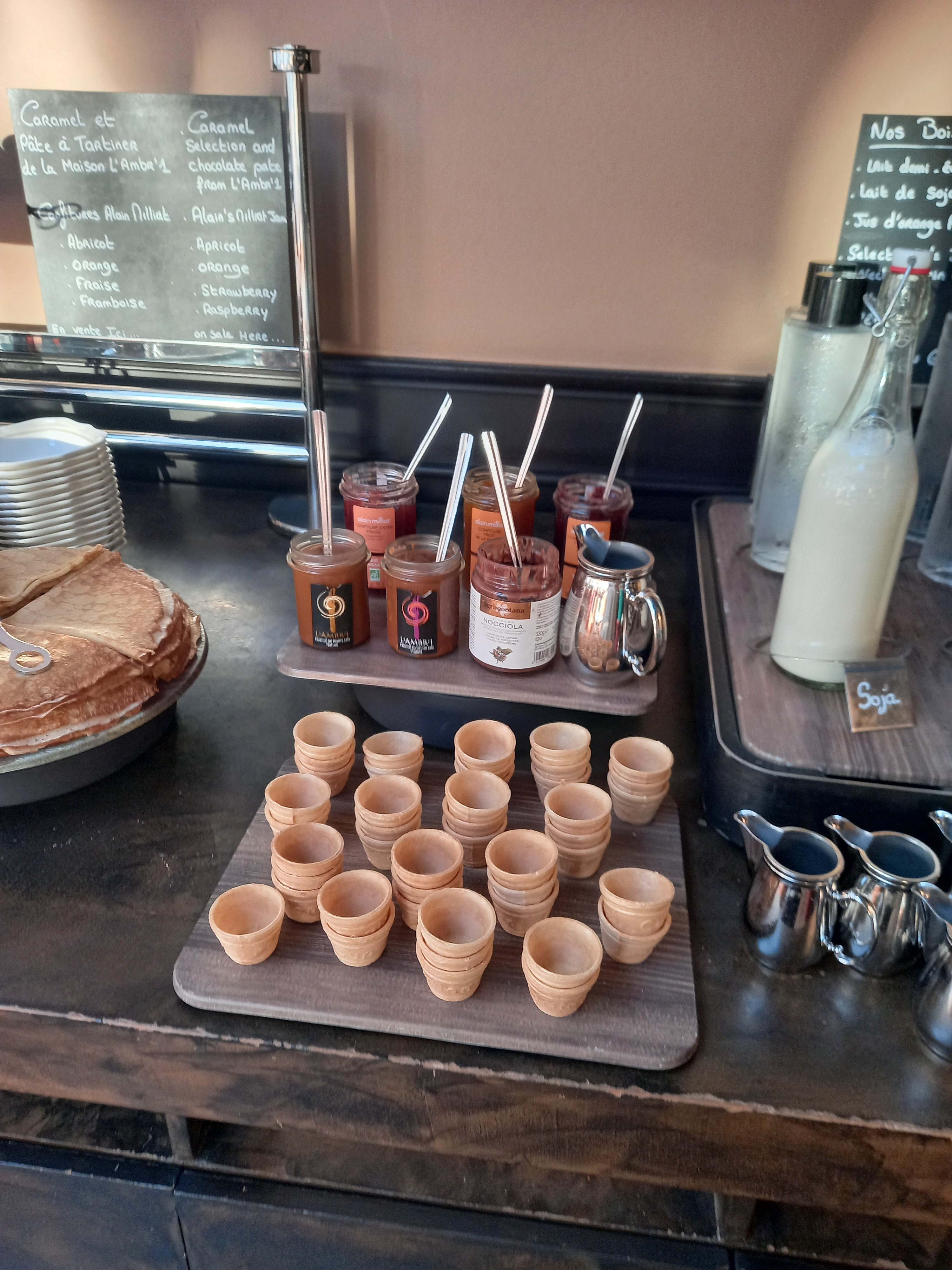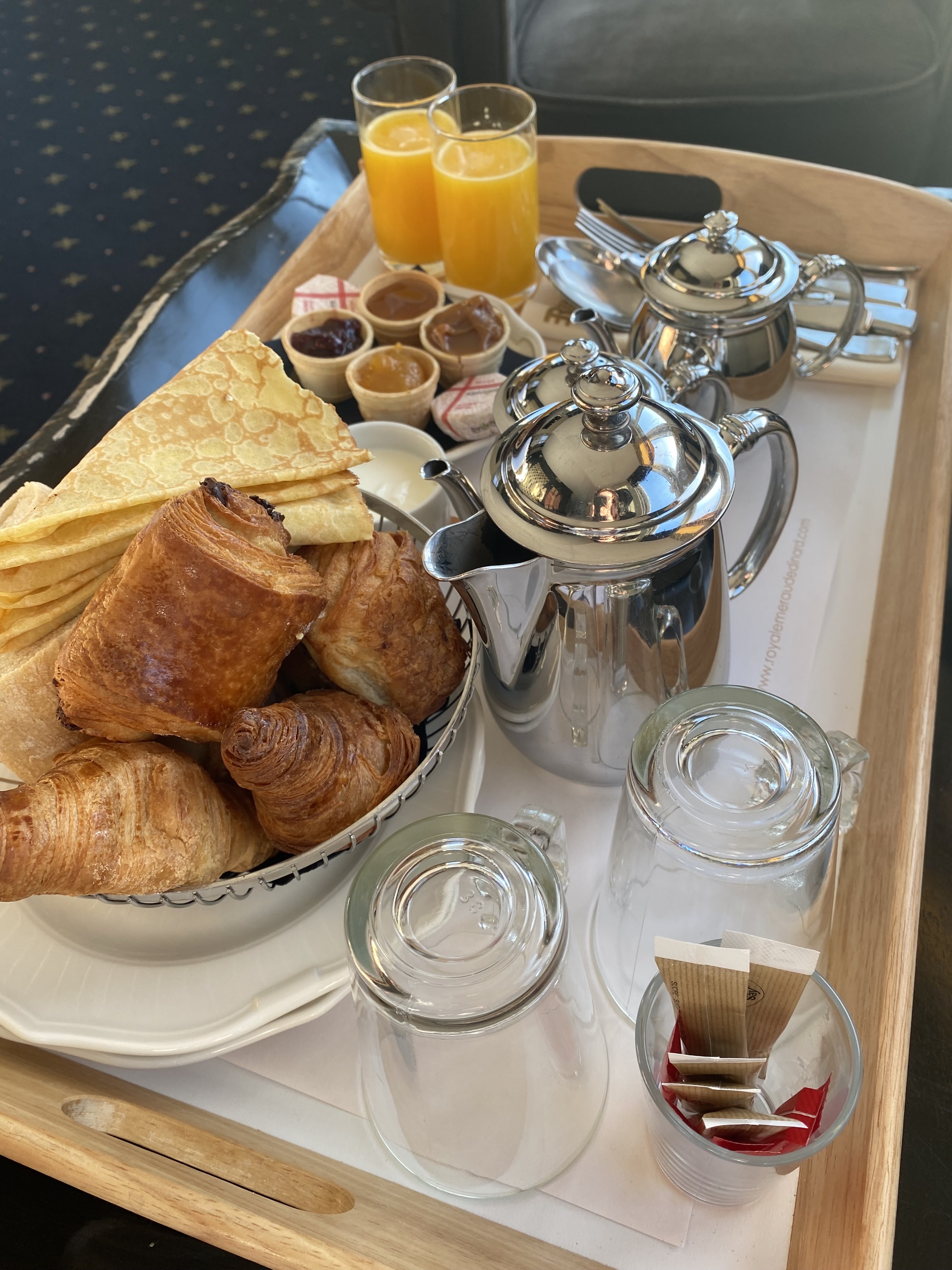 L'hôtel propose un goûter comprenant une boisson et un choix de gâteaux du jour pour la somme de 13 euros. En fait, nous étions 4 à avoir pris cette formule, hier am. Si les boissons n'appellent aucun commentaire particulier, en étant totalement ordinaires à l'exception du choix de thés ; le reste laisse plus qu'à désirer : choix des gâteaux du jour décevant et très limité, tartes aux fruits (figues, abricots, pommes) sèches, peu appétissantes et à peine présentables. Le prix est donc largement exagéré et la prestation bien moyenne.