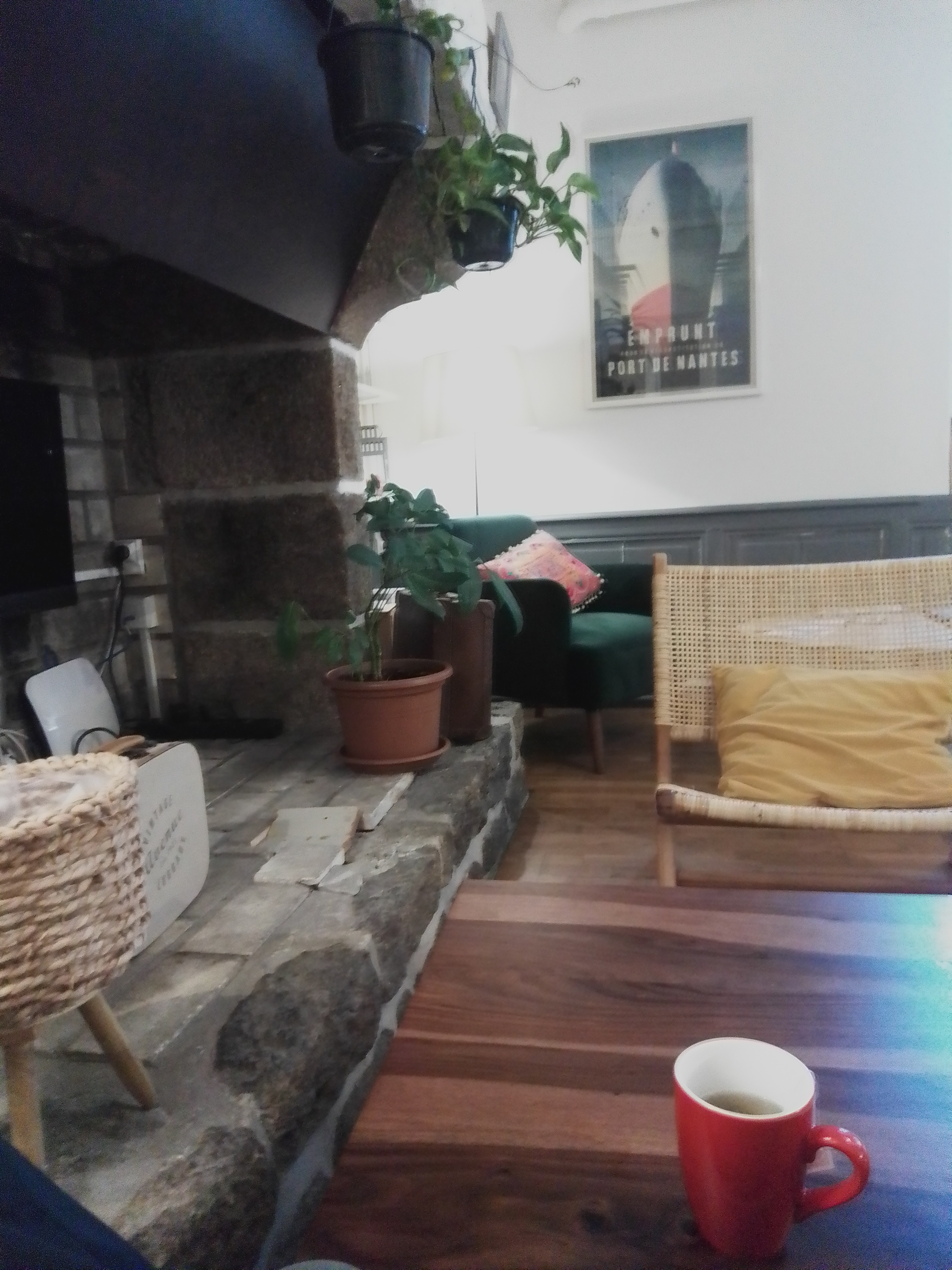 Accueil prévenant et chaleureux.... très jolie chambre dans la cour intérieure... hôtel propre, clair, calme et bien situé, pas loin à pied du centre-ville et de la mer... Jolies décorations ( photos diverses, tableaux..) et salon lecture (et petits déjeuners ) vintage bien agréable .... Bon petit déjeuner avec belle musique ( Agnez Obel, quel délice e voix )... Justement , dans ce cadre là, pas sûr que la télé allumée, dans l'âtre, ( même avec le son éteint ) soit adéquate, surtout pour voir défiler les images d'infos continues de BFM TV ou CNews... C'est si bien de petit déjeuner avec seulement la musique , sans parasitage de personnalités diverses, souvent insupportables.... Celà n'engage que moi et c'est simplement pour vous aider que je dis ça, car quand on reviendra sur la côte d'Emeraude, c'est chez vous qu'on viendra dormir, c'est certain. ..mais la TV allumée, le matin , apporte t'elle un réel plus, vu que vous avez tant d'autres arguments à faire valoir
