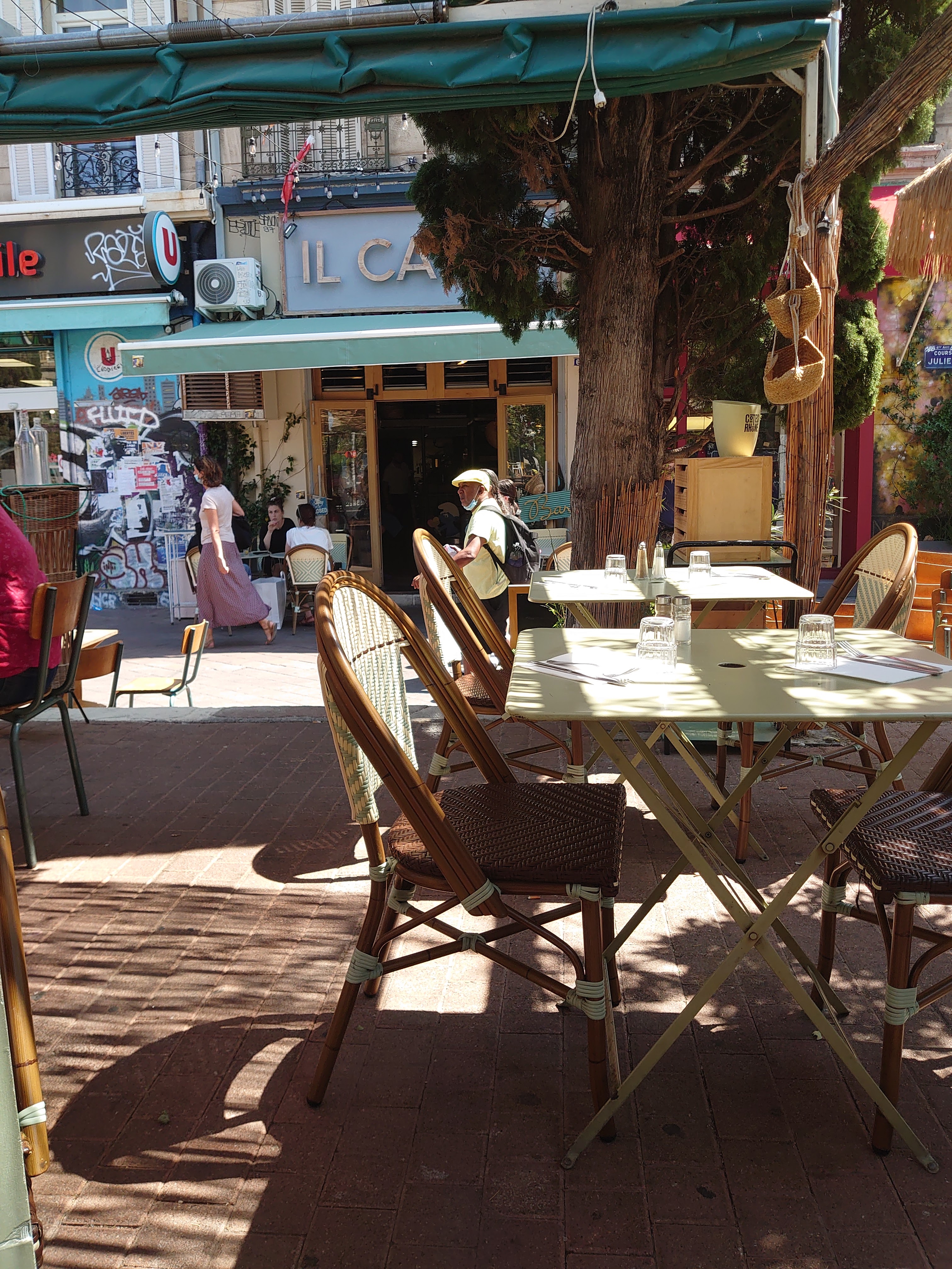 Il Caffè est une institution du Cours Ju ! Équipe du tonnerre. Tous jeunes et beaux, funky et artistes dans l’âme. La déco est exotique et trendy. Les spritz excellents. La zic au top. La terrasse ensoleillée. Fanny et Laurent, les proprios, sont frère et sœur. Ils ont repris le café de leur grand-père et ont ouvert trois autres lieux dans le triangle d’or, Cours Ju, Notre-Dame du Mont et la Plaine : O’Fanette, la Clique et la Bisette. Ils contribuent aux good vibes du quartier. Un peu de hype et beaucoup d’authentique, vous ne serez pas déçus 🔥