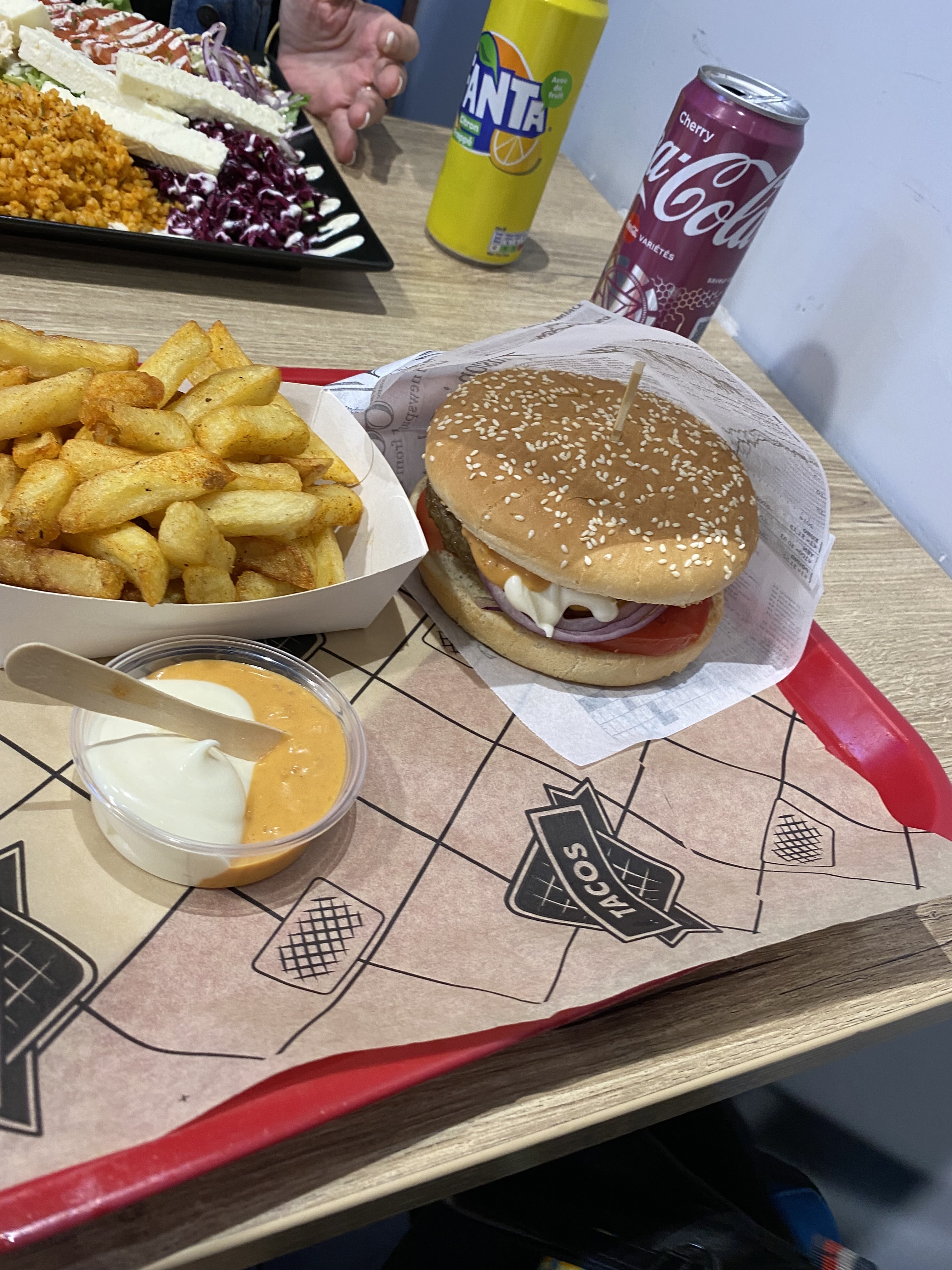 Nous sommes très déçu, le tacos brochette de poulet était en faite une brochette de boeuf très dure a mastiquer . Le burger du chef quant a lui avait un gout désagréable. Nous sommes globalement très déçu