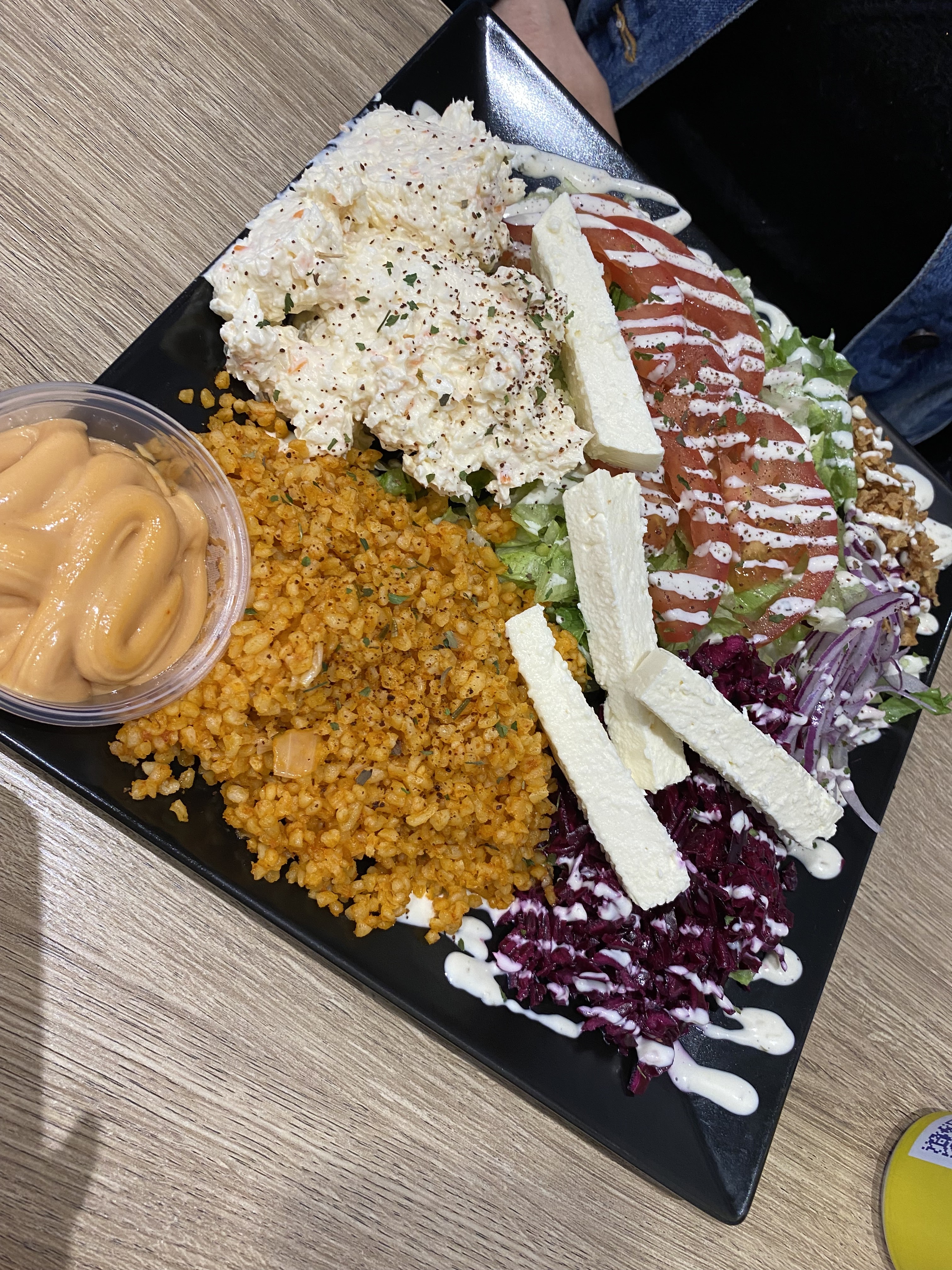 Assiettes garnies et copieuses. Les viandes sont bonnes. Bon rapport qualité/prix. Petits bémols : j’ai payé pour un supplément fêta et une sauce supplémentaire que je n’ai pas eus et le volume de la musique dans le restaurant est très élevé, on ne s’entendait plus parler 😅